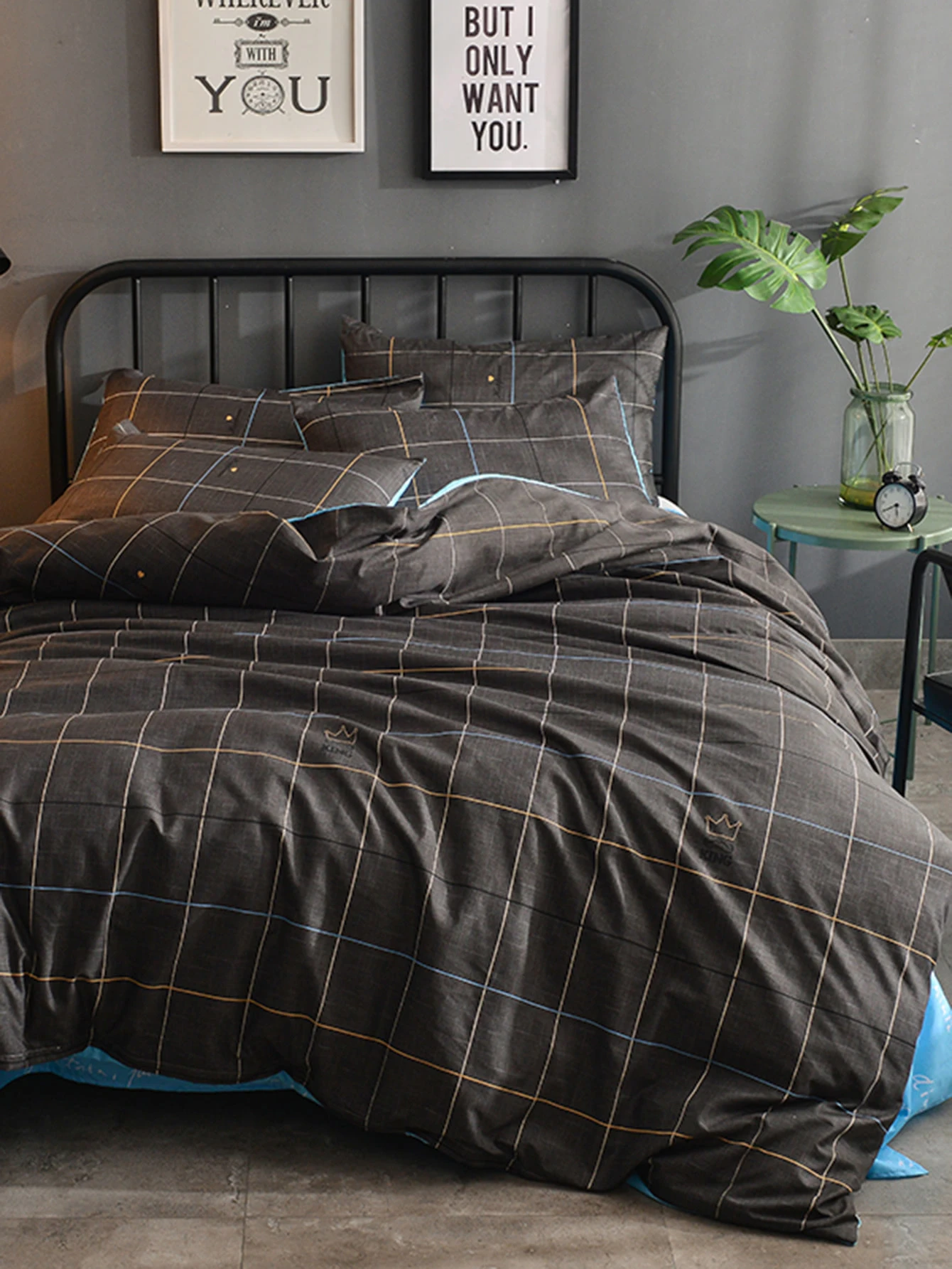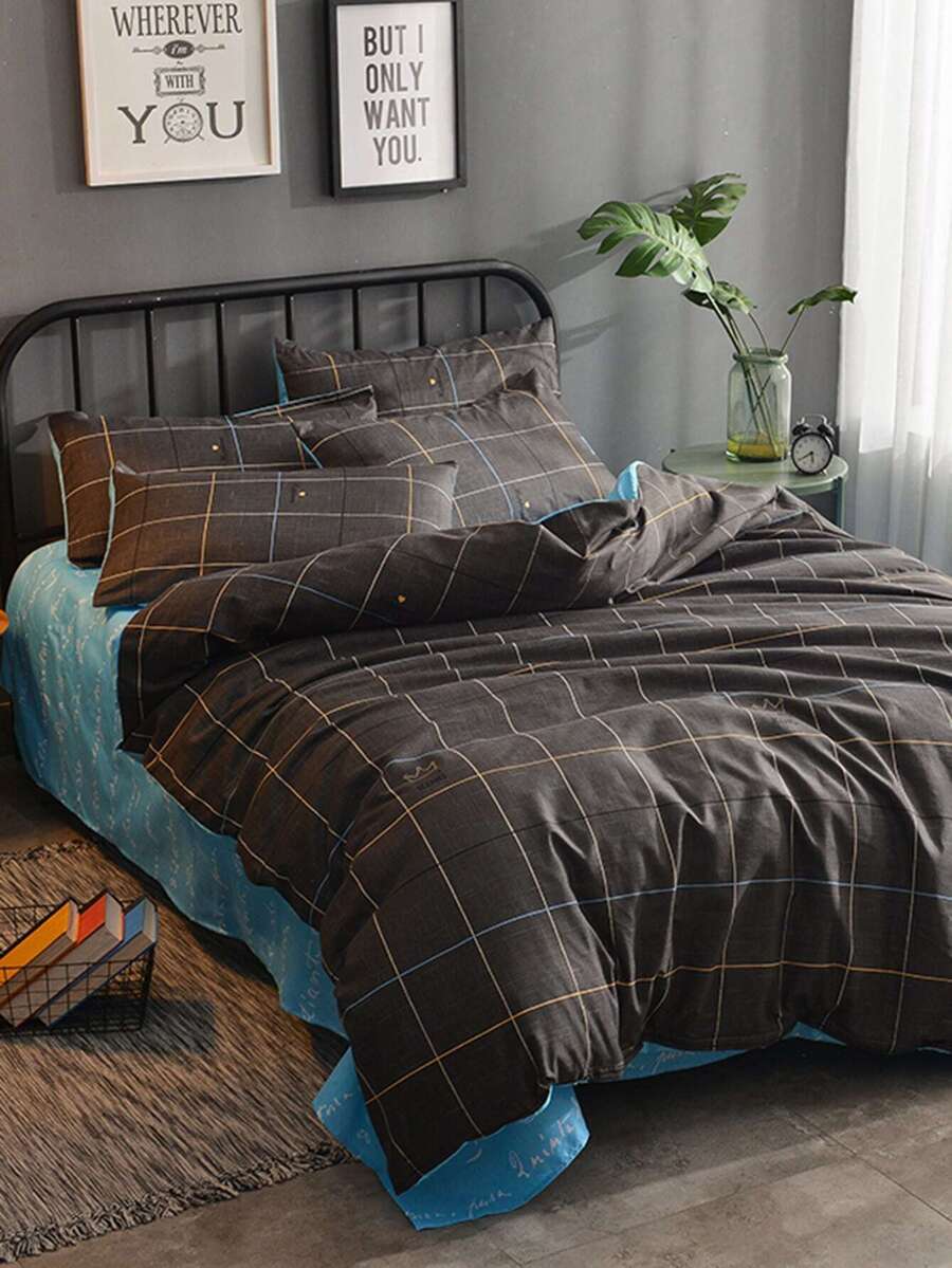 1.8m 4Pcs Grid & Letter Print Duvet Cover Set