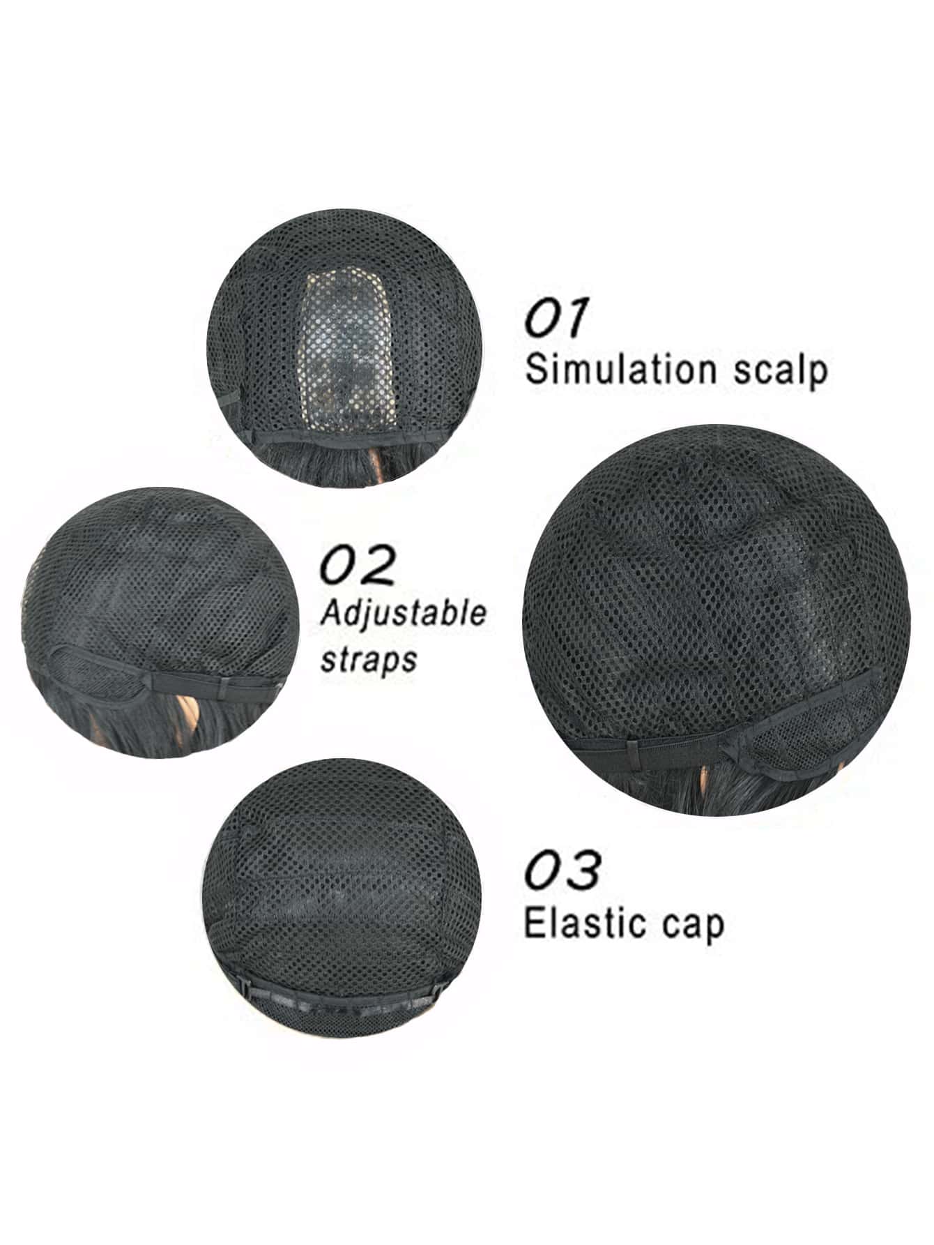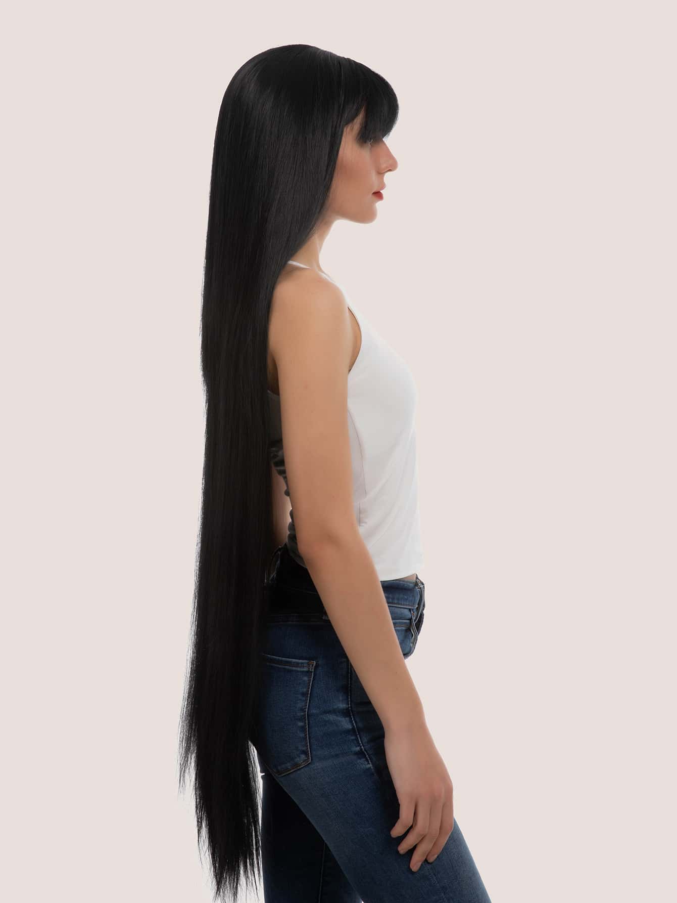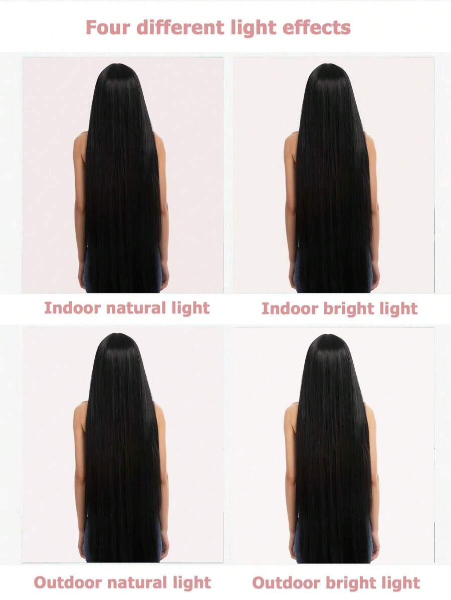 1 Meter Black Natural Long Straight Hair Fake With Bangs Synthetic Female Wig, Suitable For Everyday Use, Halloween Wig Parties And Festive Wear