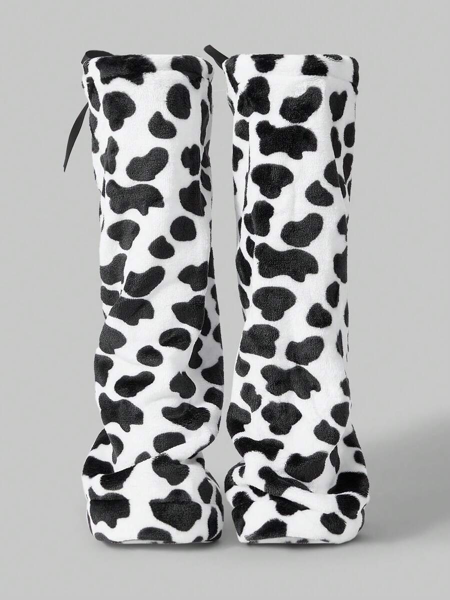 Kawaii 1 Pair Black & White Y2K Cow Print Leg Warmers, Stylish & Cute Leg Warmers For Women, Suitable For School, Dates, Shopping, Parties, JK, Lolita And Other Outfits, Autumn/Winter