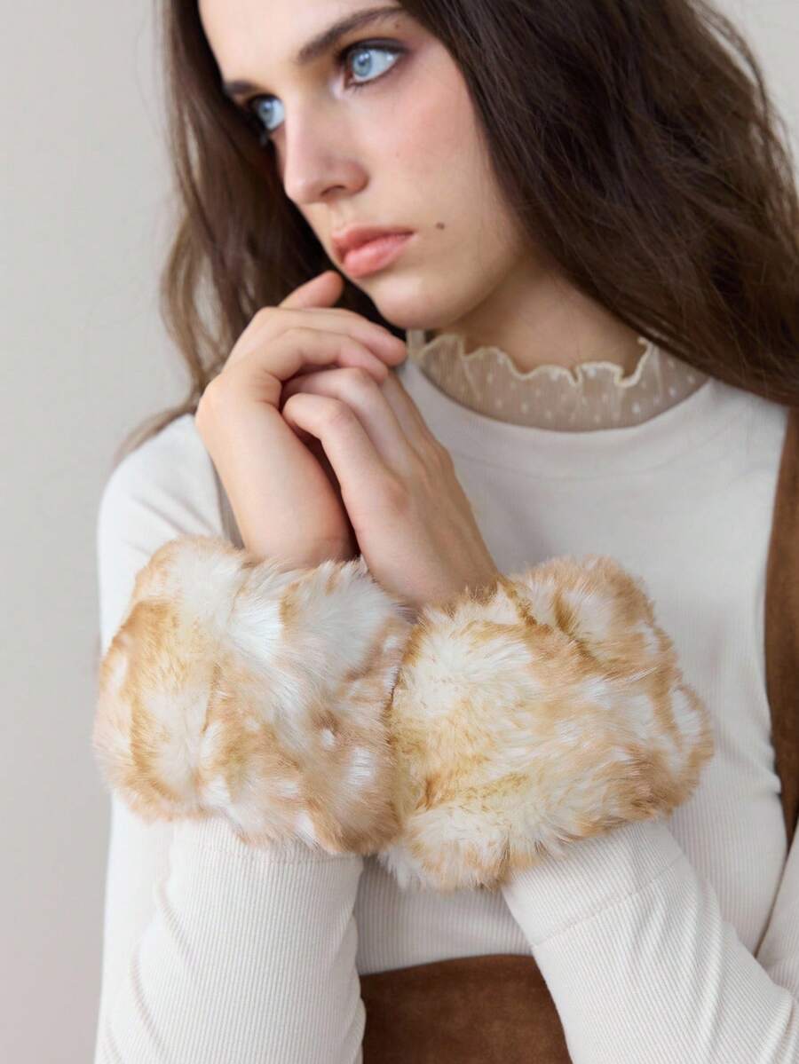 Fairycore 1 Pair Cute Deer Faux Fur Gloves, Y2K Animal Print Super Thick Arm Warmers, Party/Costume Gloves, Autumn/Winter Cozy Sleeve Cuffs
