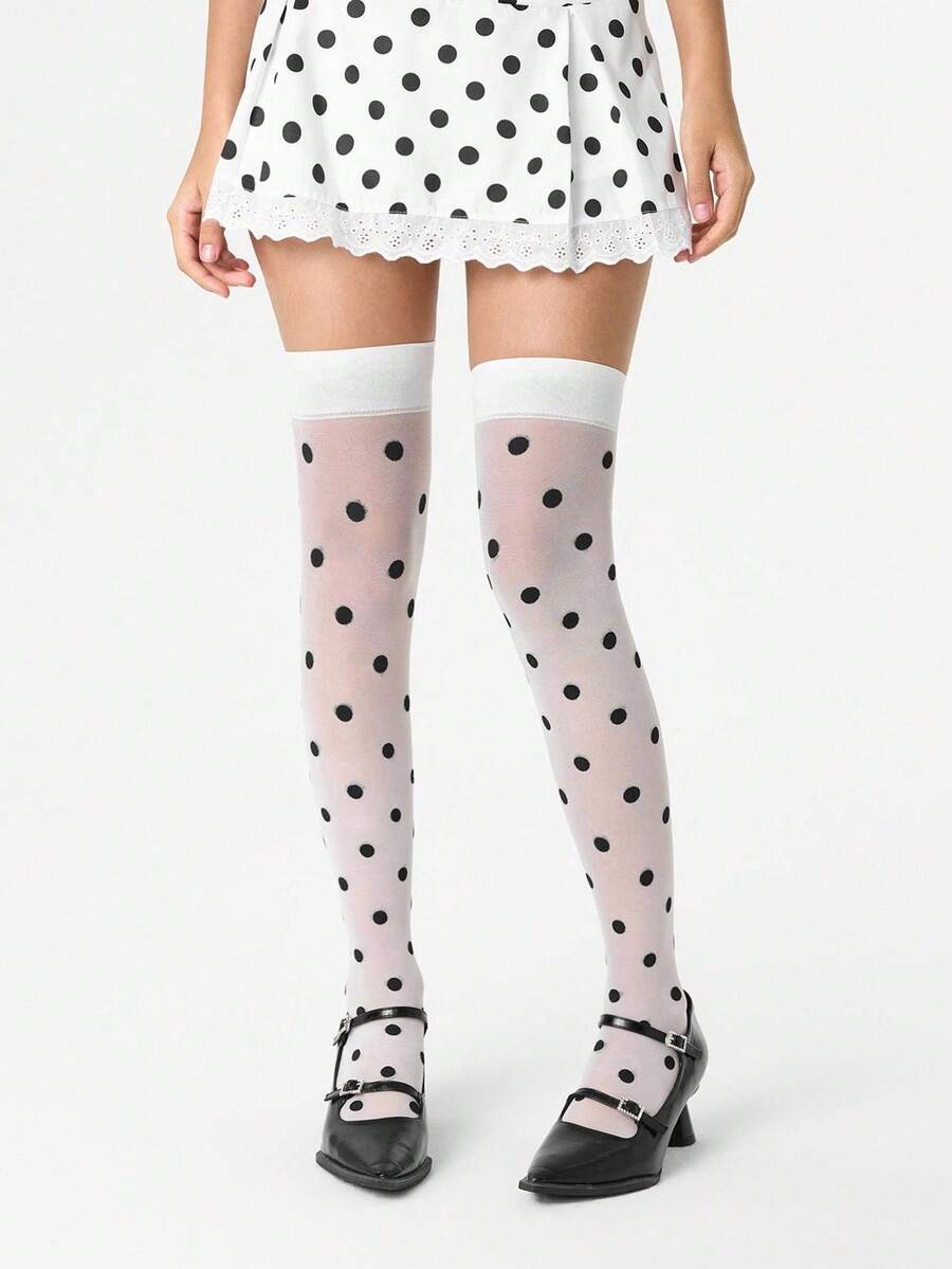 Grunge Punk 1 Pair Cute Polka Dot Over-The-Knee Socks, Minimalist Sweet White Solid Color Thigh High Socks, Daily Wear Super Thin Elastic Sheer Tights