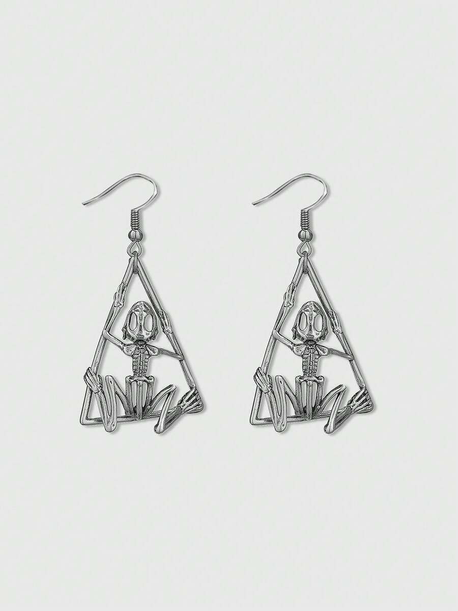 1 Pair Gothic Style Silver Exaggerated Triangle Skeleton Dangle Earrings For Women