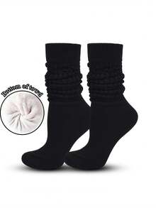 1 Pair Women's Mid-Calf/Knee High Slouch Socks, Solid Color Warm Leg Warmers