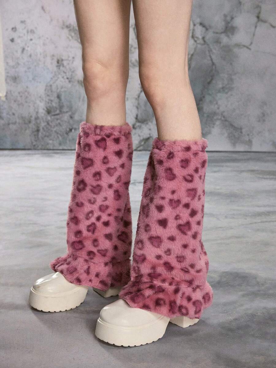 Goth 1 Pair Y2K Retro Furry Leopard Print Textured Animal Pattern Leg Warmers, Fashion Minimalist Wild Style, Suitable For Commuting, School, Shopping, Party, Halloween, Christmas And Other Occasions
