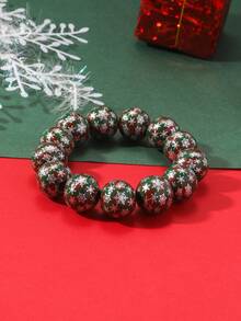 1 Piece Of Creative Personalized Plaid Silver Snowflake Print Wooden Beads Beaded Elastic Bracelet
