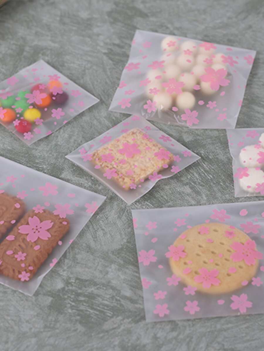 100pcs Flower Print Packaging Bag School Supplies Food Bag Food Box Suitable For Candy Chocolate Cookies Etc.