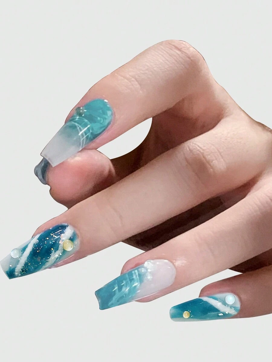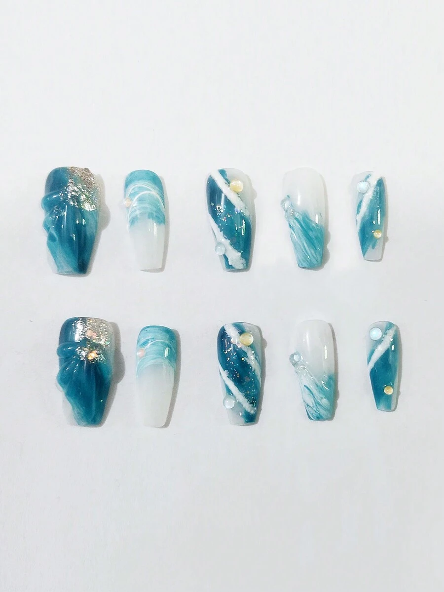 Fairycore 10pcs 3D Blue Fake Nail & 1sheet Tape
