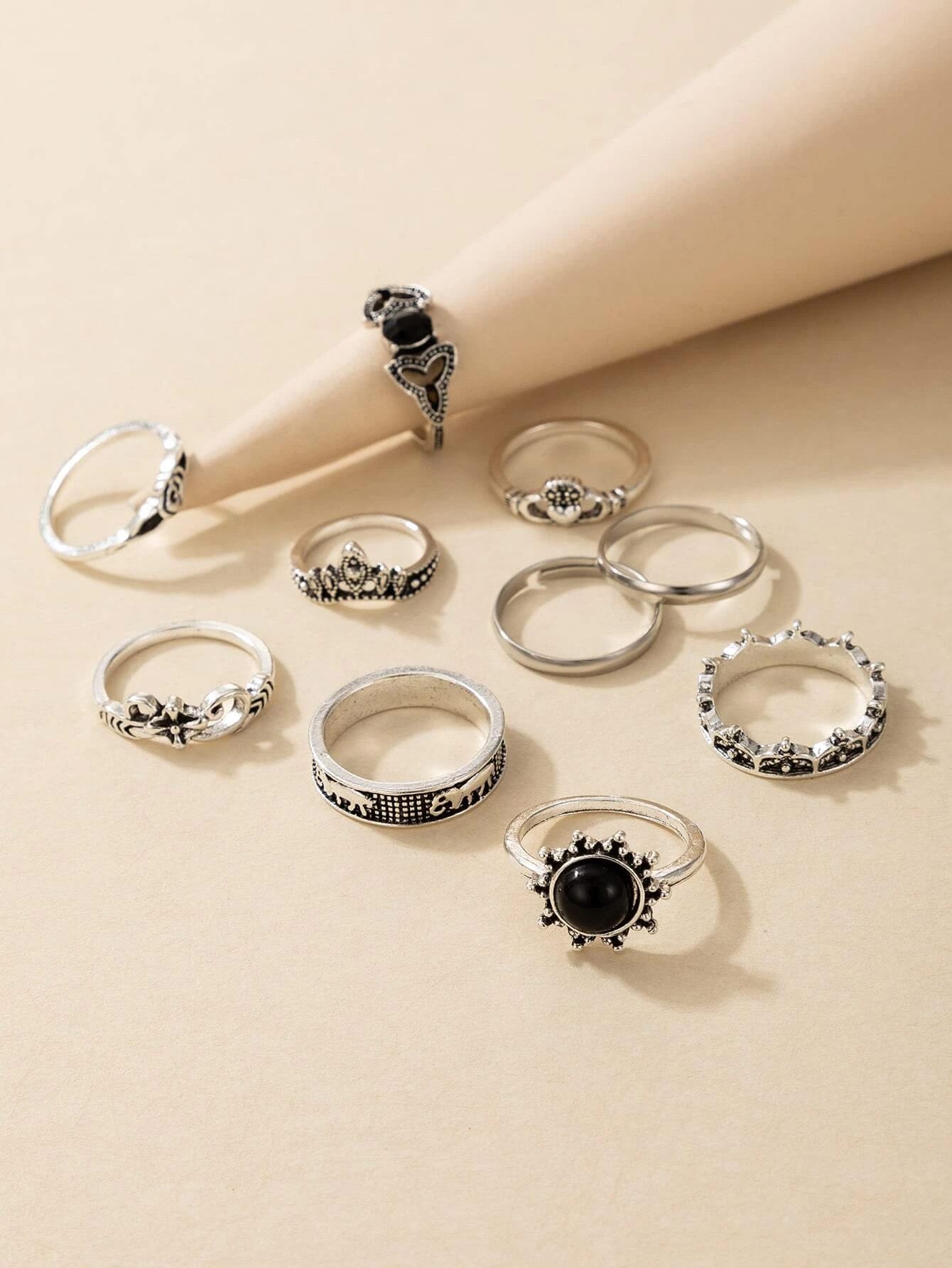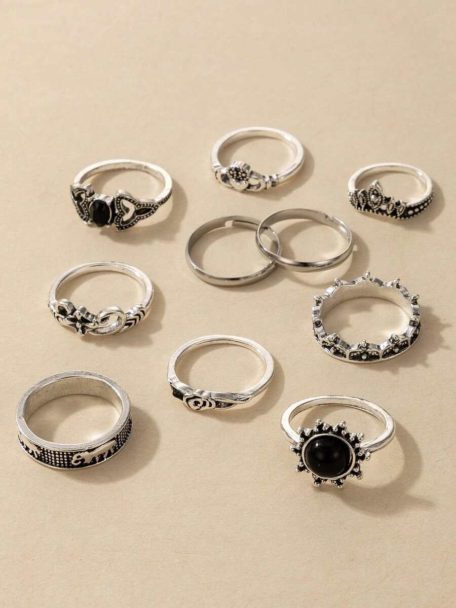 10pcs Flower Engraved Ring