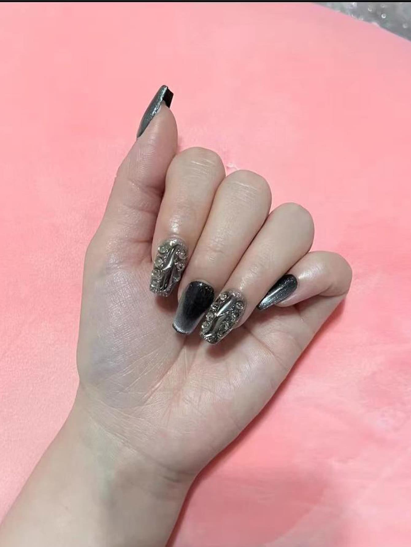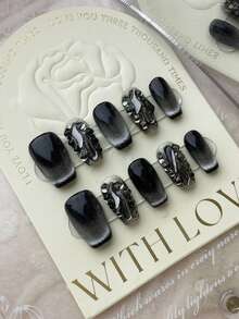 10pcs Long Coffin 3D Rhinestone Decor Fake Nail & 1sheet Tape