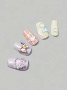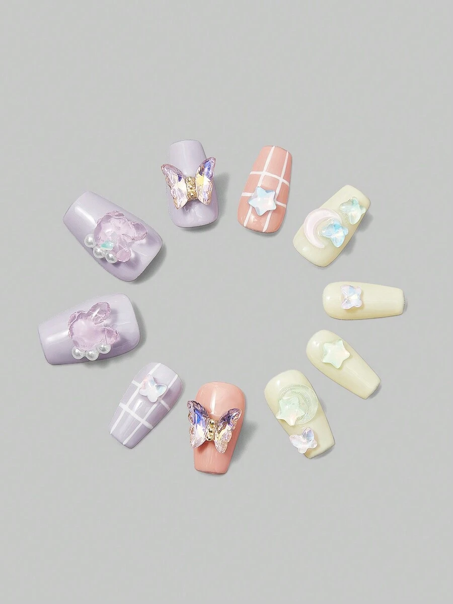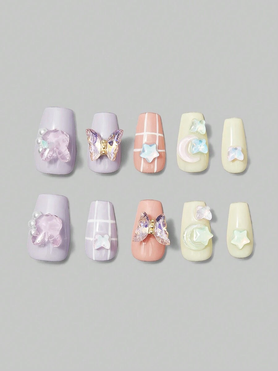 Kawaii 10pcs Long Coffin Butterfly Decor Fake Nail Kit