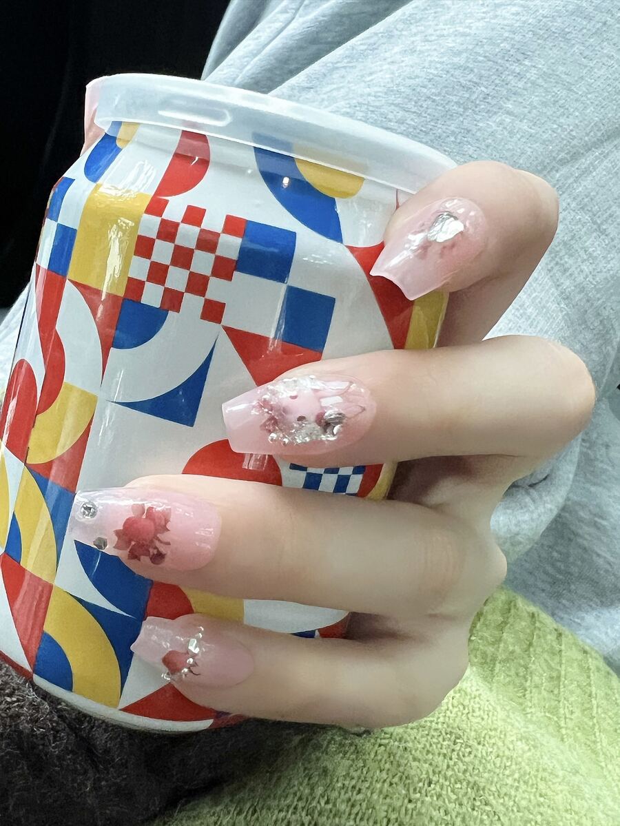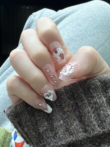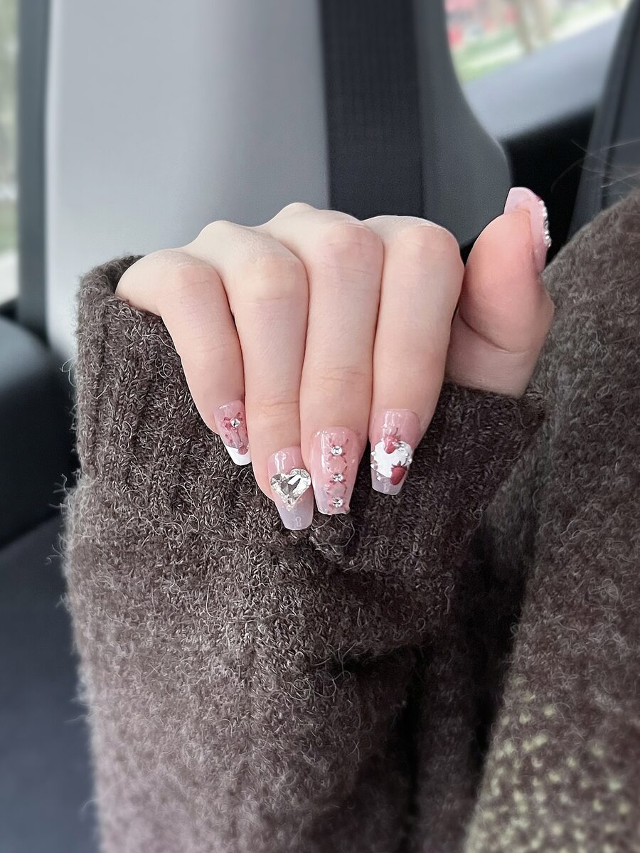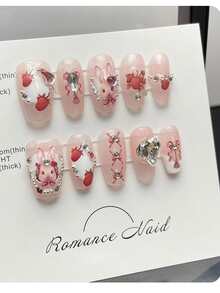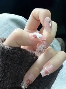 10pcs Short Coffin 3D Heart Decor Fake Nail & 1sheet Tape