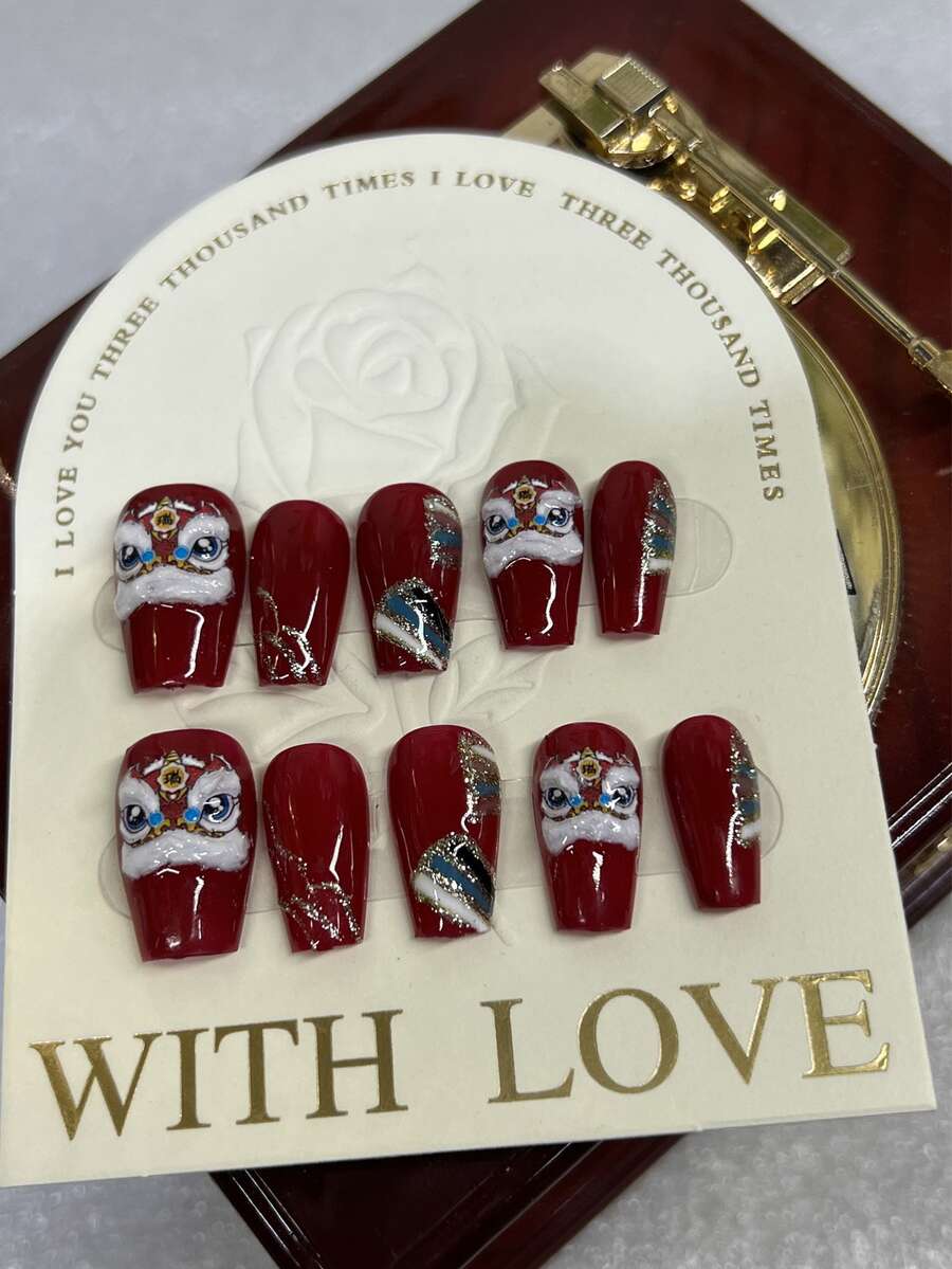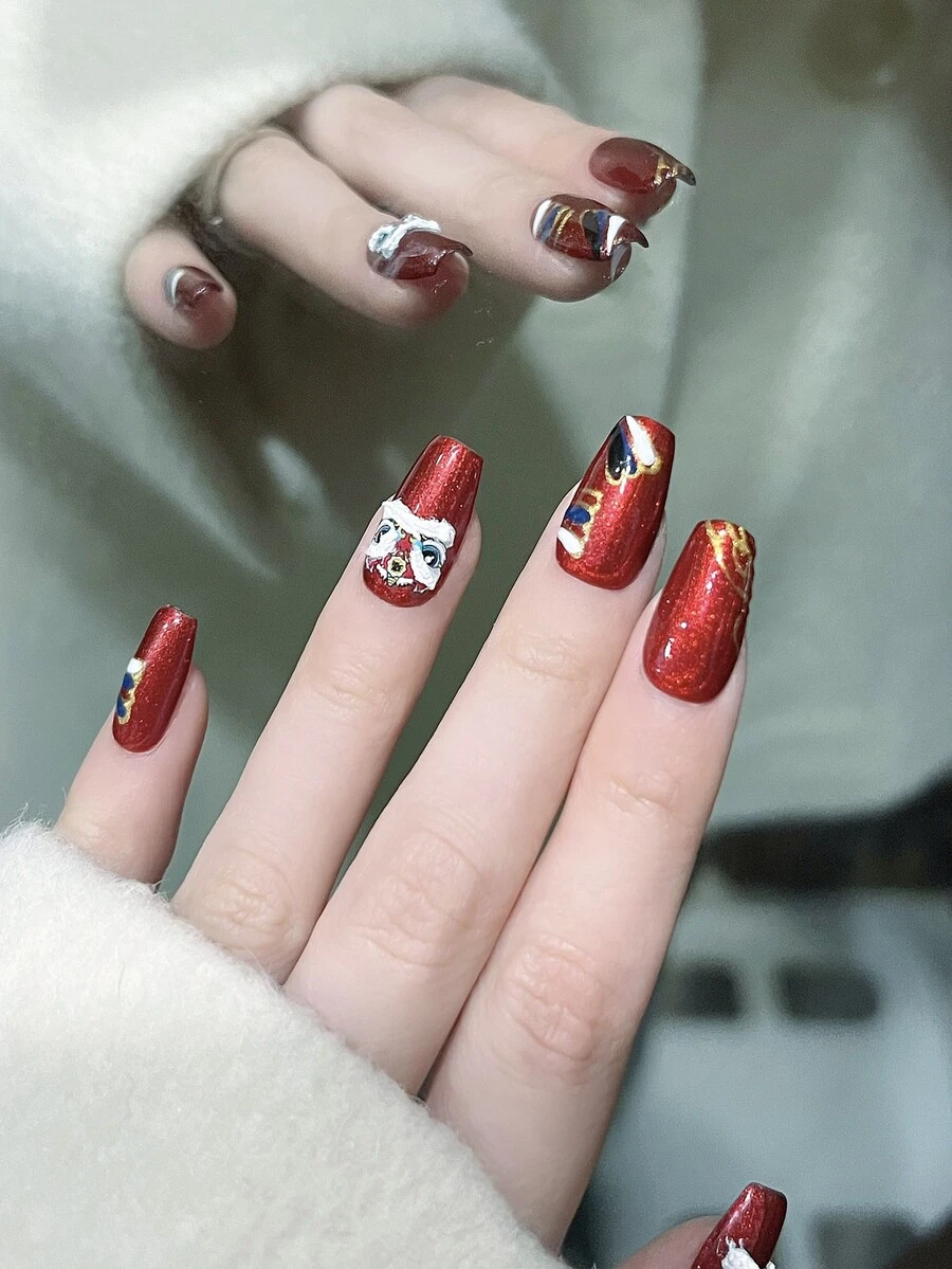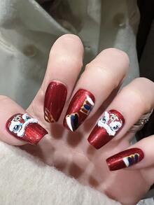10pcs Short Coffin Glitter Fake Nail & 1sheet Tape