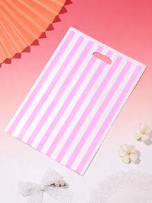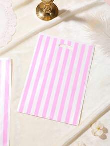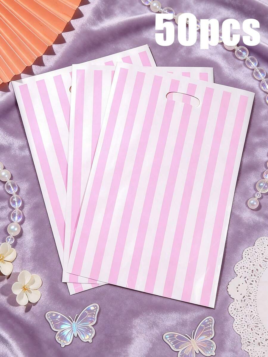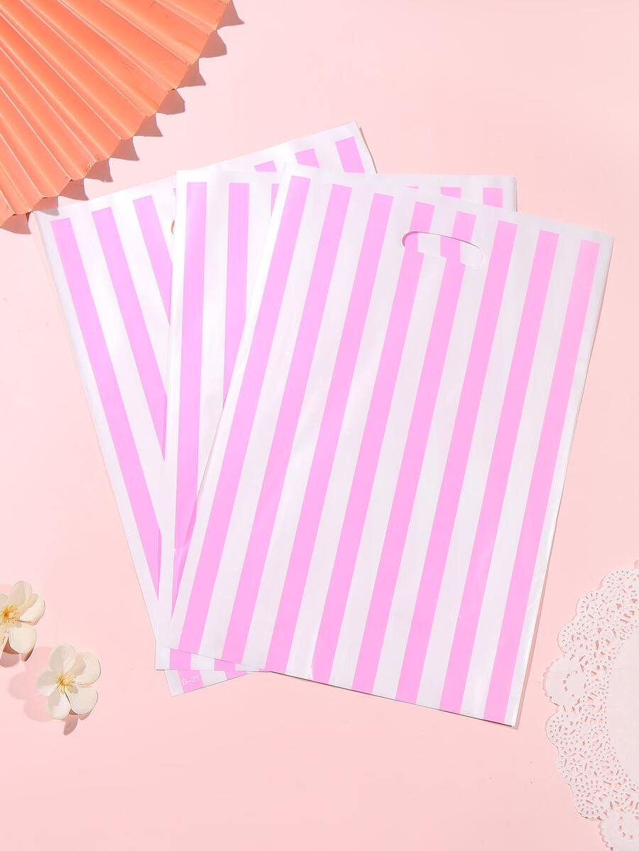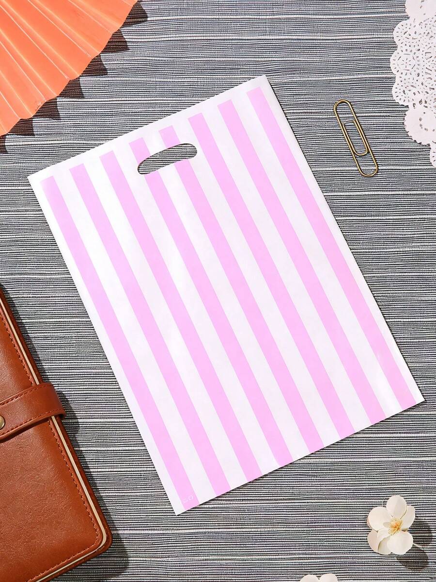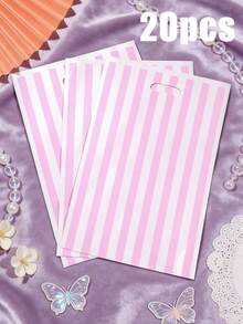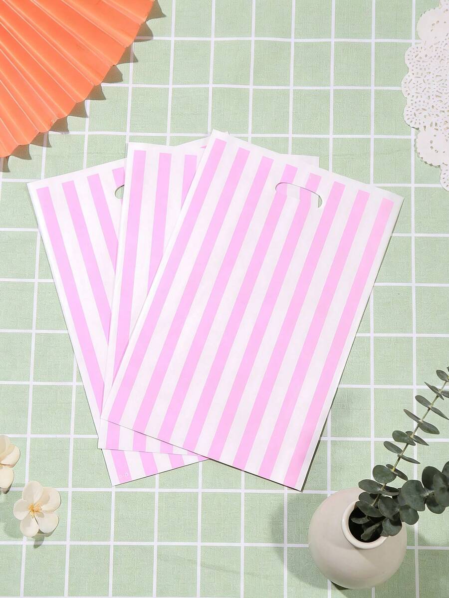 30pcs Pink Striped Birthday Party Disposable Favor Bags, Sweet And Energetic Vertical Striped Pattern, Party Favor Bags Theme, High Repeat Customers, Tote Bags Suitable For Birthday Party Favors, Market Stalls, Spring Picnic Item Storage
