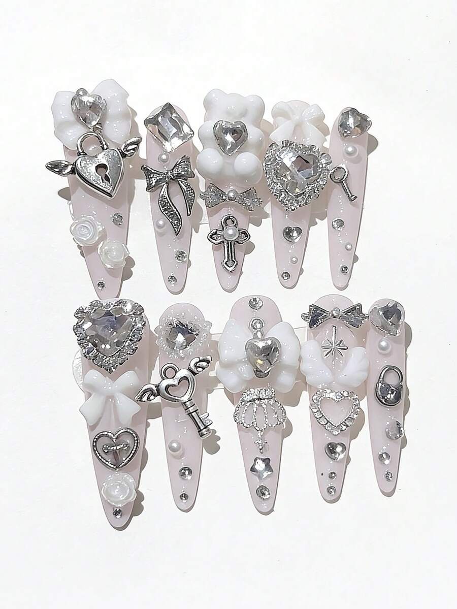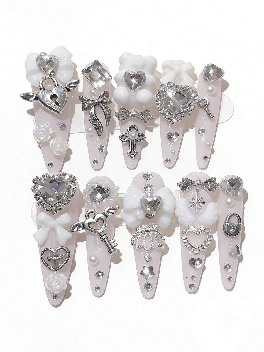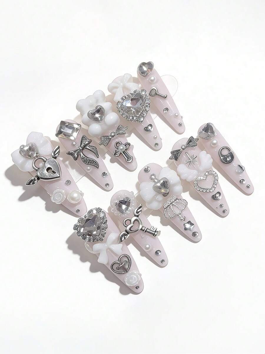 Anime 10pcs Y2K Cute Heart, Star, Bow, Wing Nail Art Stickers With Tape
