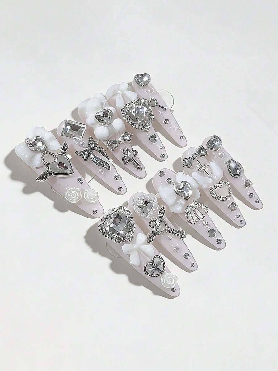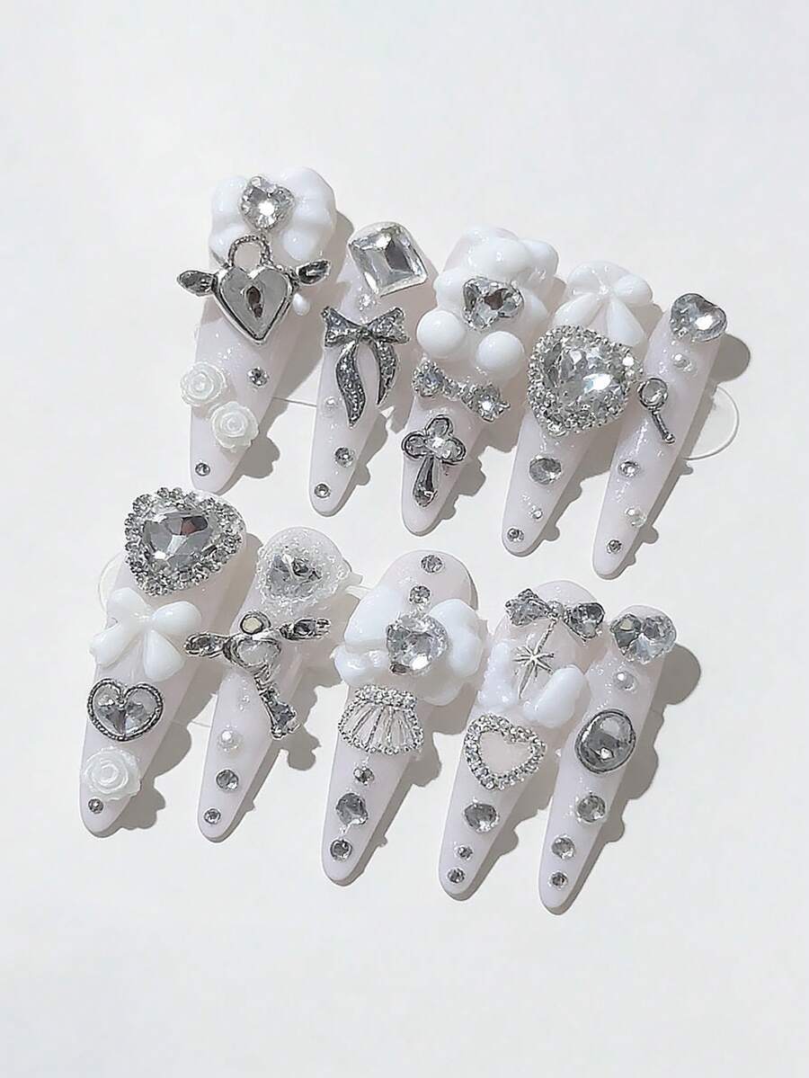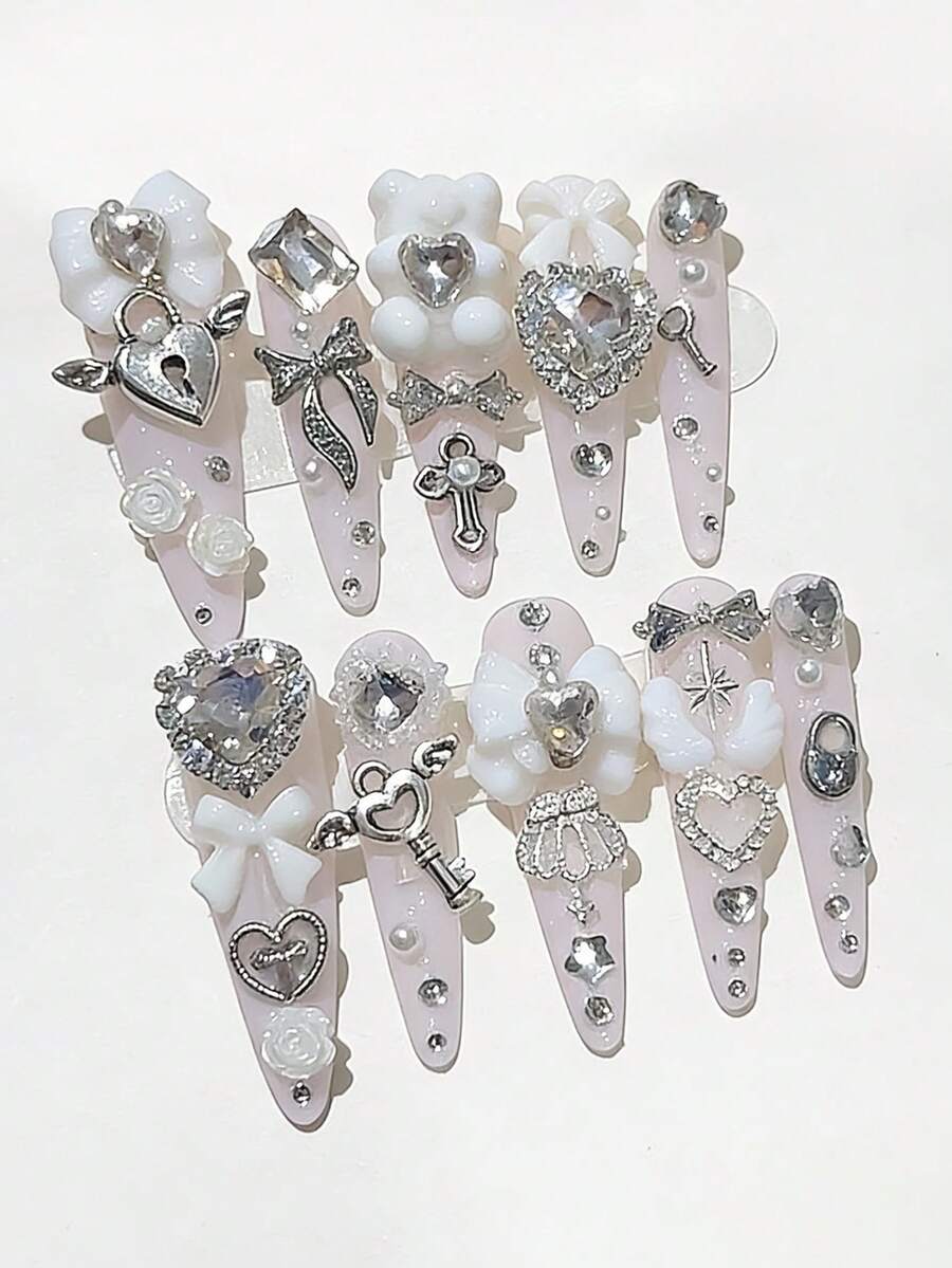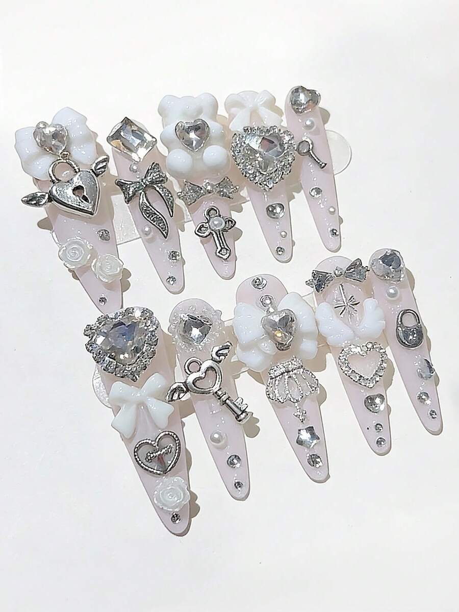 Anime 10pcs Y2K Cute Heart, Star, Bow, Wing Nail Art Stickers With Tape