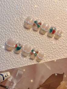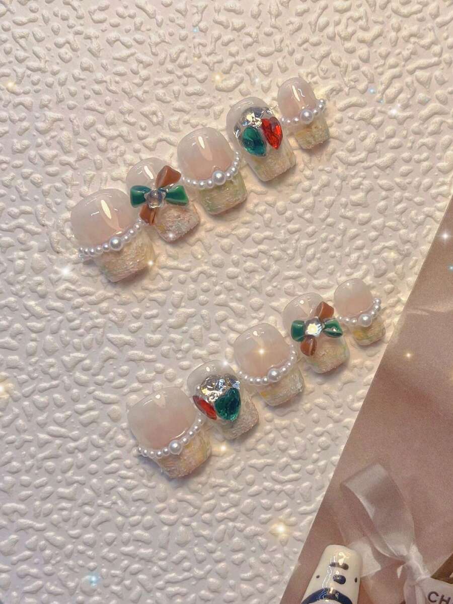 Fairycore 10pcs/pack Short Silk Road False Nail With Free Jelly Glue