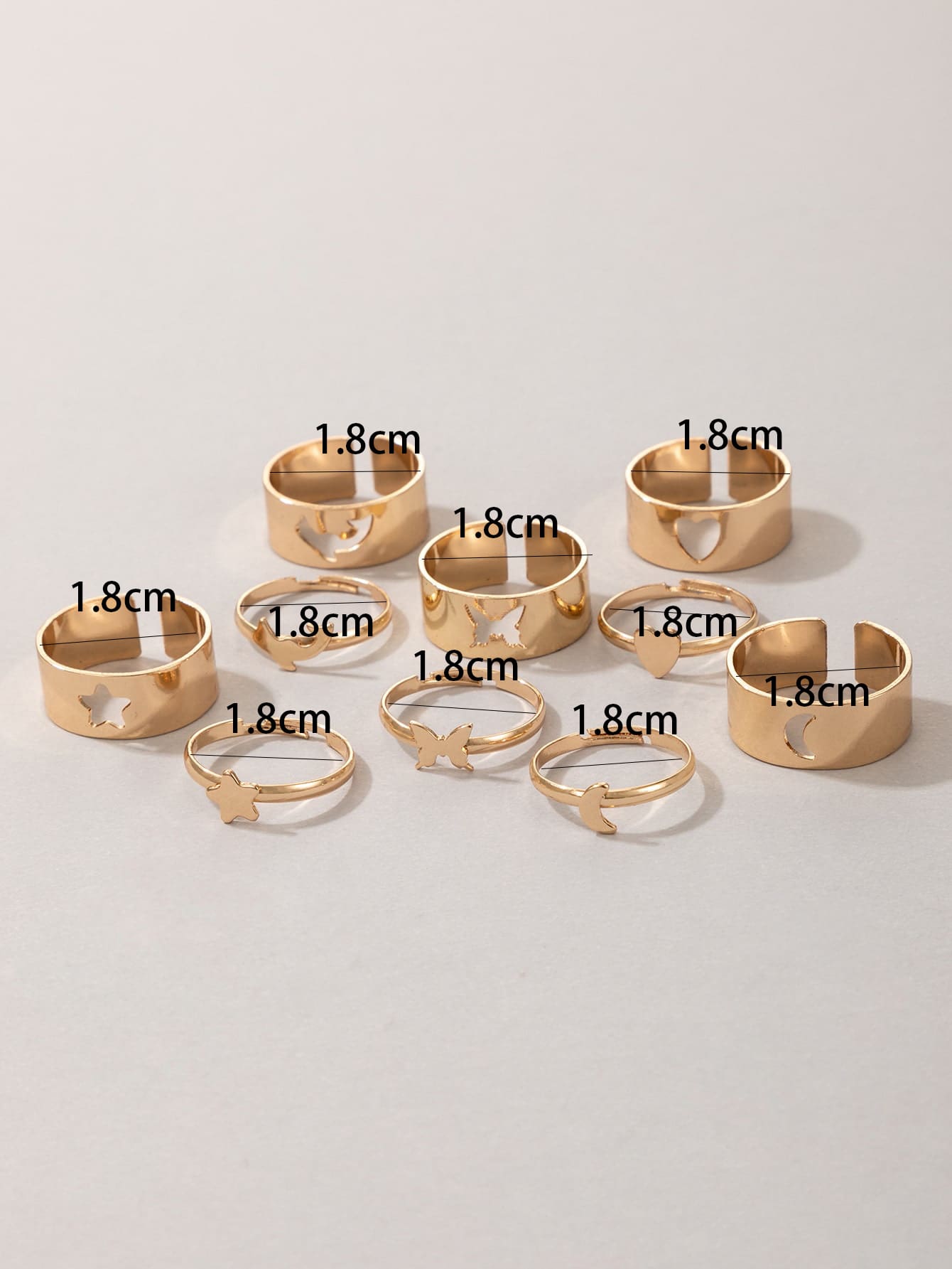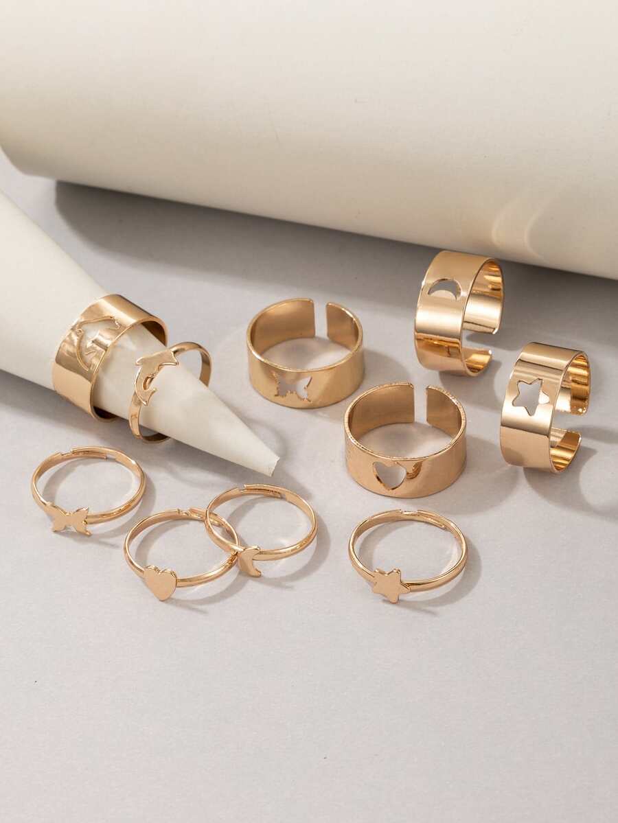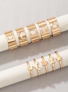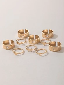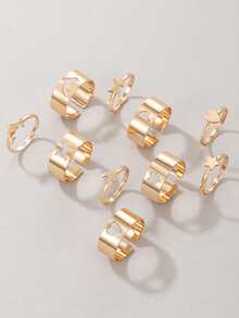 10pcs/set Star & Heart Decor Ring
