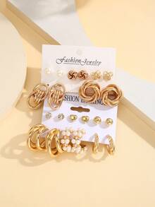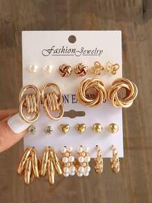11pairs Fashion Faux Pearl & Rhinestone Decor Earrings For Women For Daily Decoration