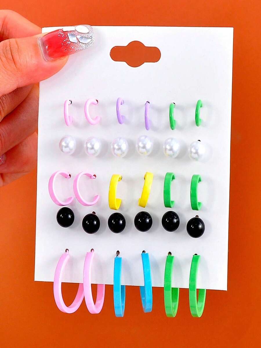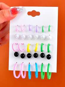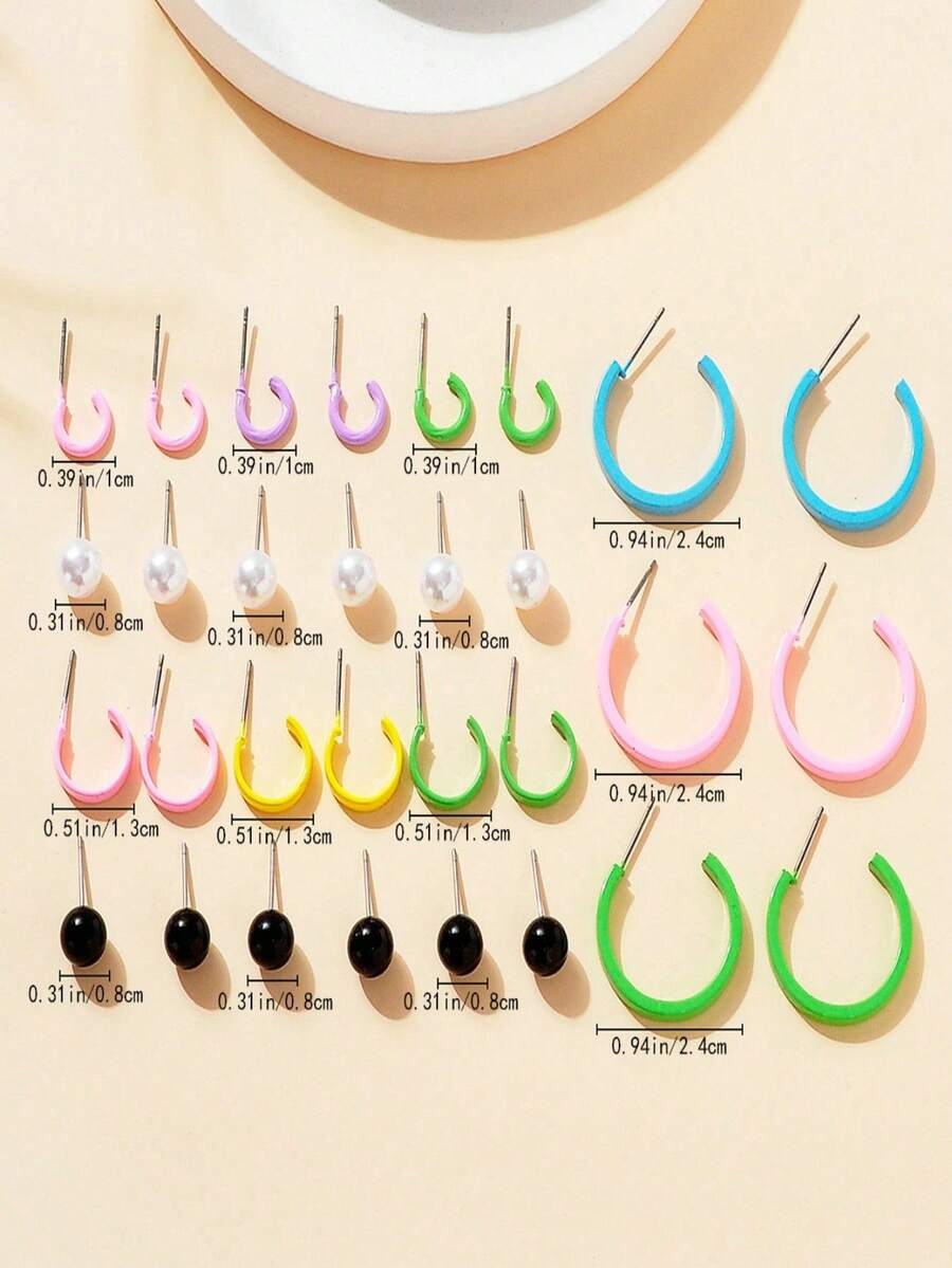15pairs Fashion Zinc Alloy Faux Pearl Decor Earrings For Women For Daily Decoration