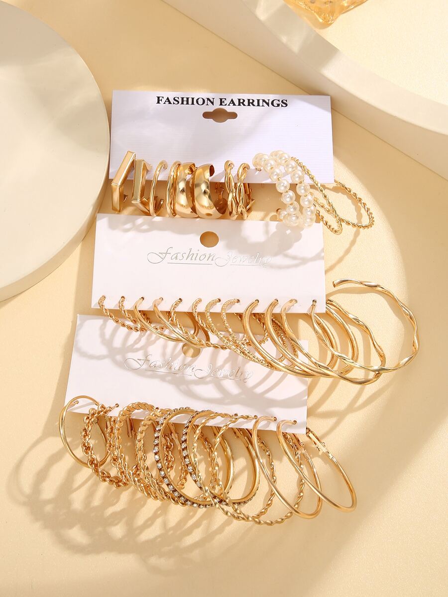 18pairs Fashion Zinc Alloy Rhinestone & Faux Pearl Decor Earrings For Women For Daily Decoration