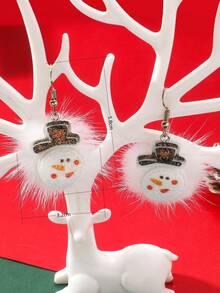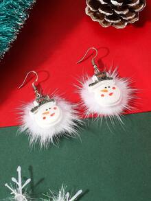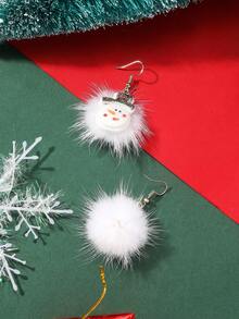 1pair Cartoon Glitter Snowman & Fur Ball Dangle Earrings For Christmas
