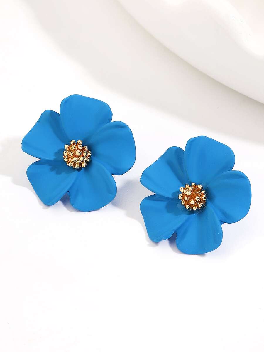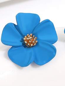 1pair Cute PMMA Blue Flower Stud Earring For Women For Daily Decoration, Vacation, Beach Party