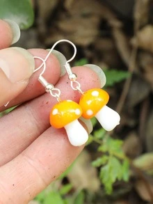 1pair Cute Polyresin Mushroom Drop Earrings For Women For Daily Life
