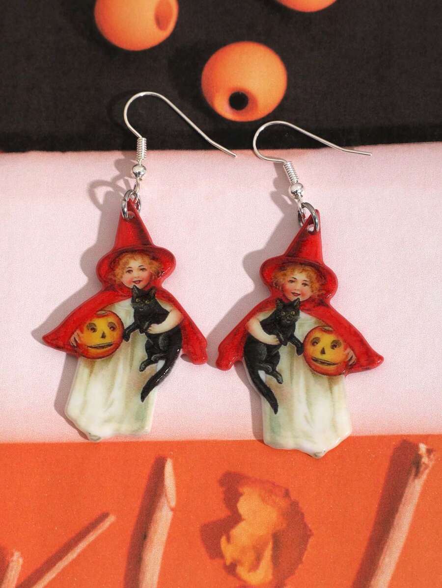 Goth 1pair Fashion Acrylic Halloween Witch Decor Drop Earrings For Women For Party