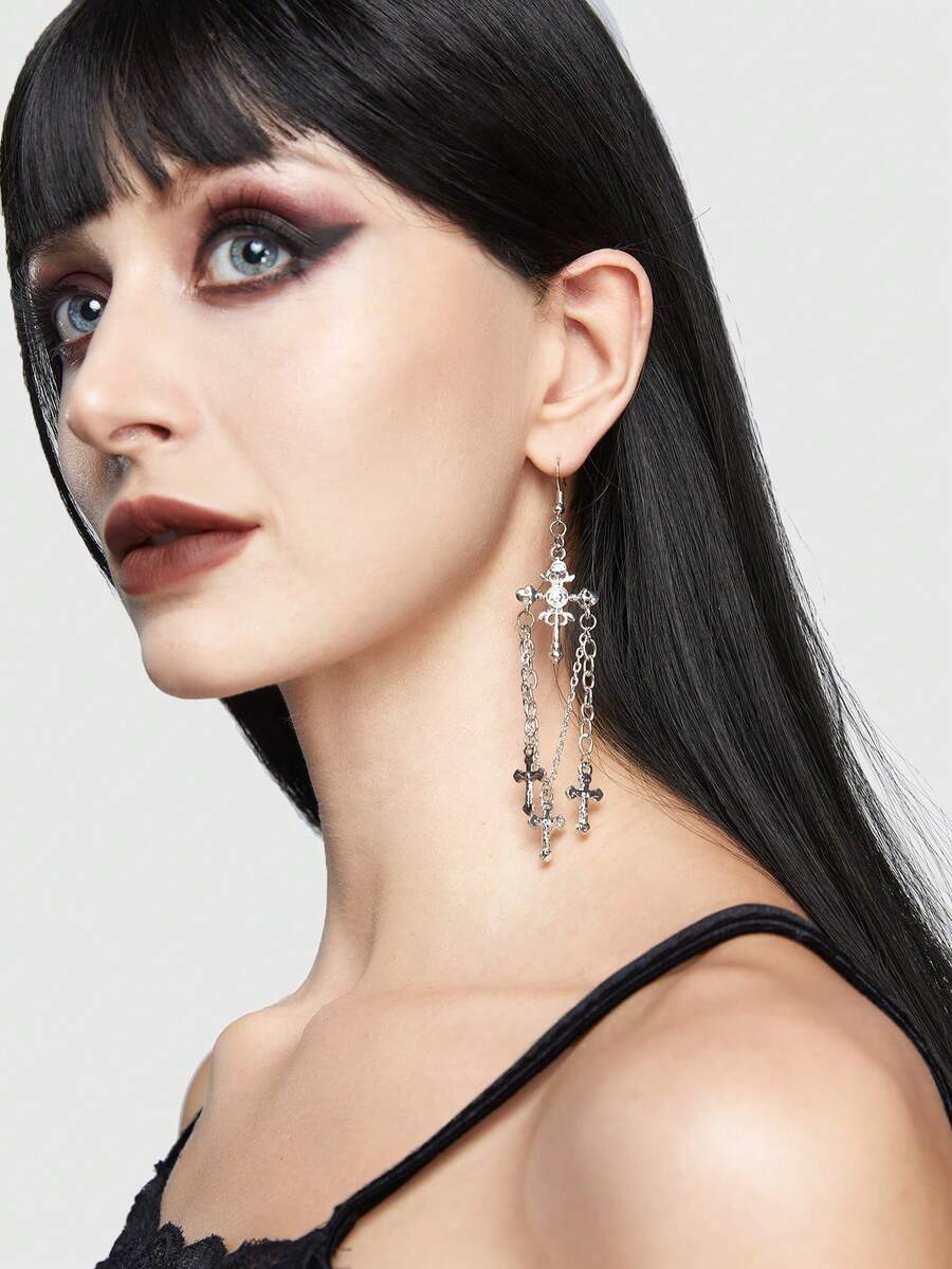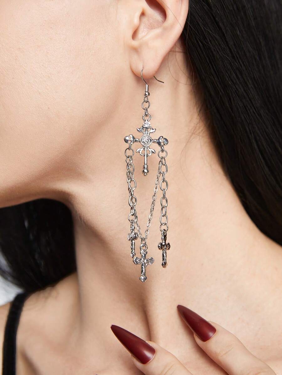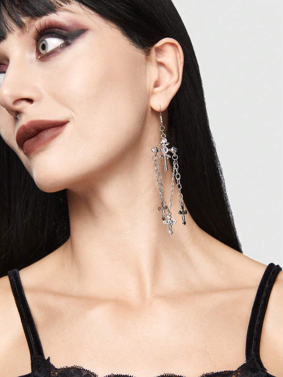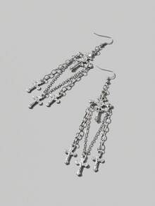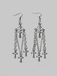 Goth 1pair Fashion Iron Alloy Cross Decor Tassel Drop Earrings For Women For Daily Decoration
