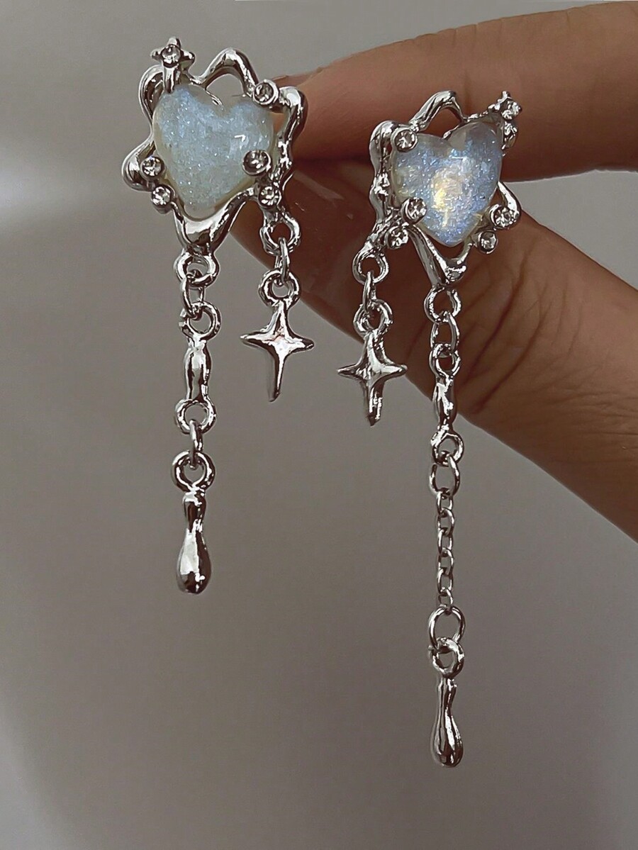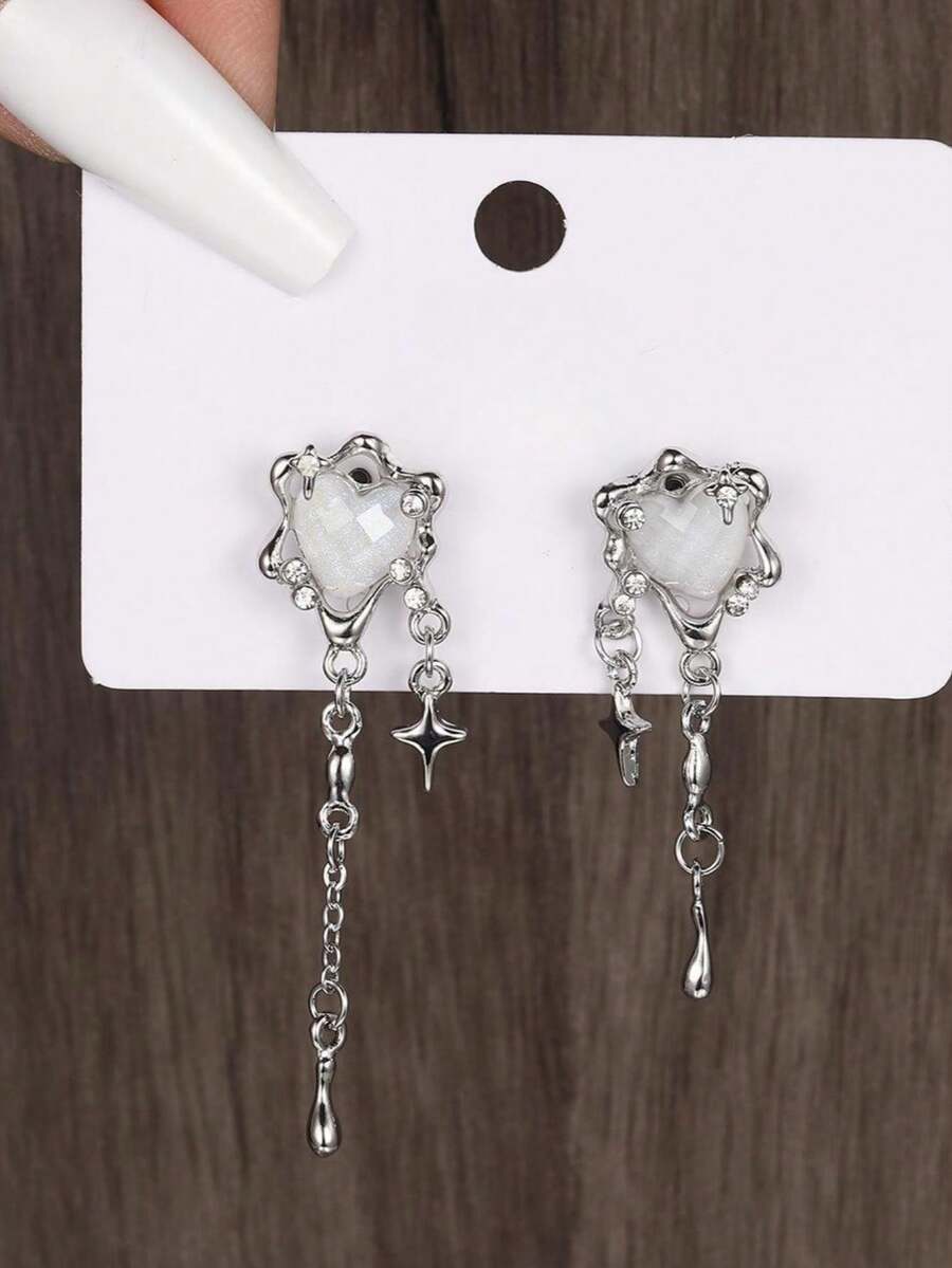 Fairycore 1 Pair Fashionable Women's Iron Alloy Heart Shaped Decorative Earrings Suitable For Daily Wear