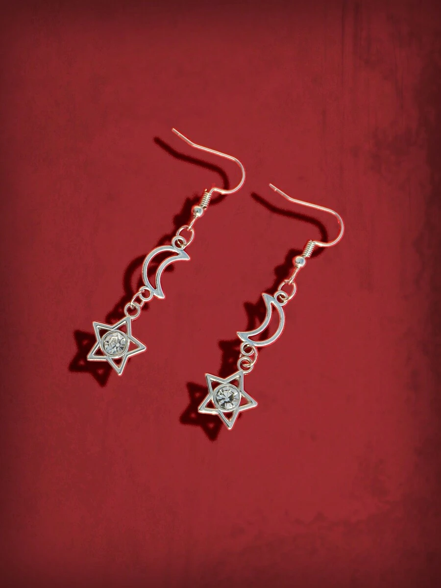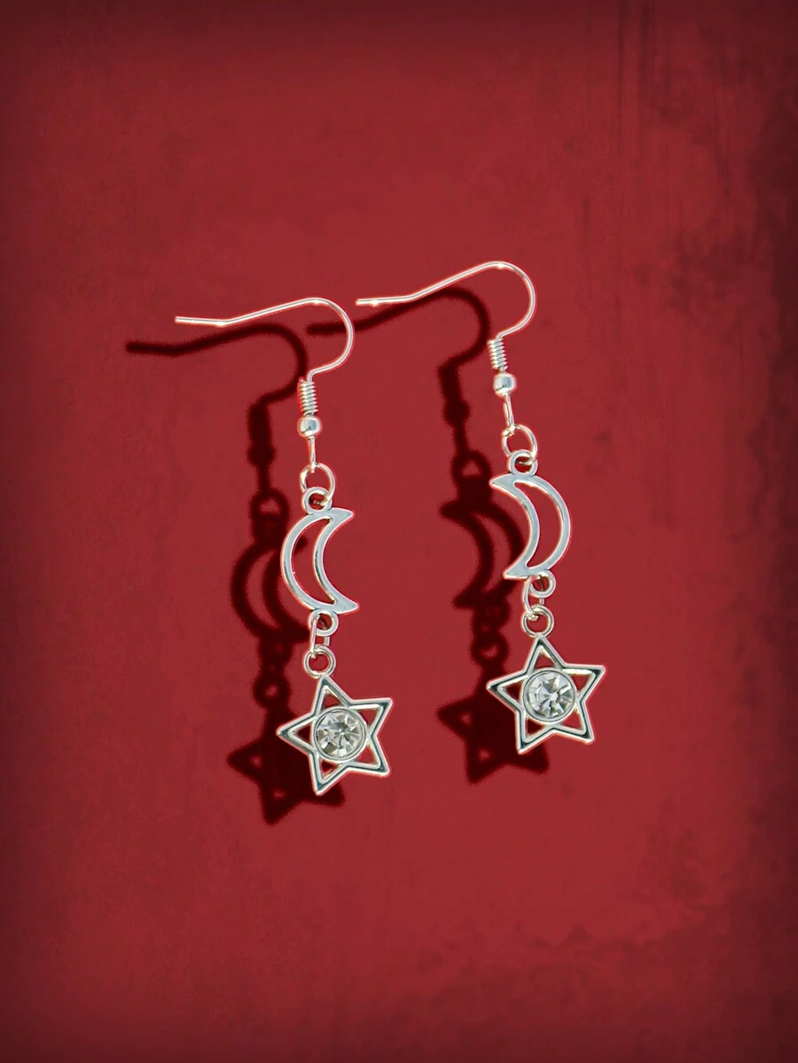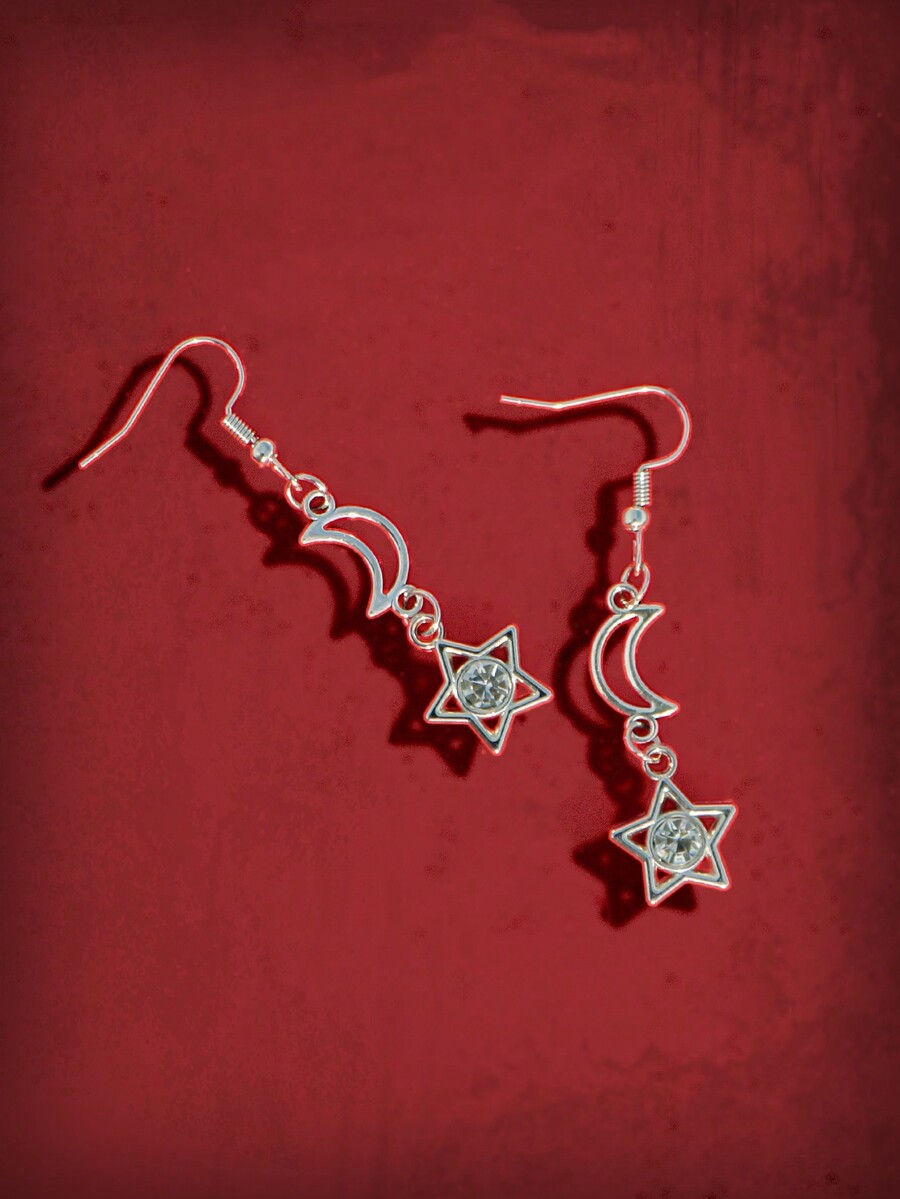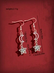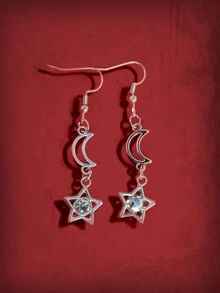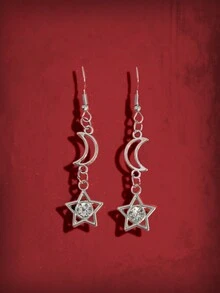 Goth 1pair Fashion Moon & Star Drop Earrings For Women For Dating Gift