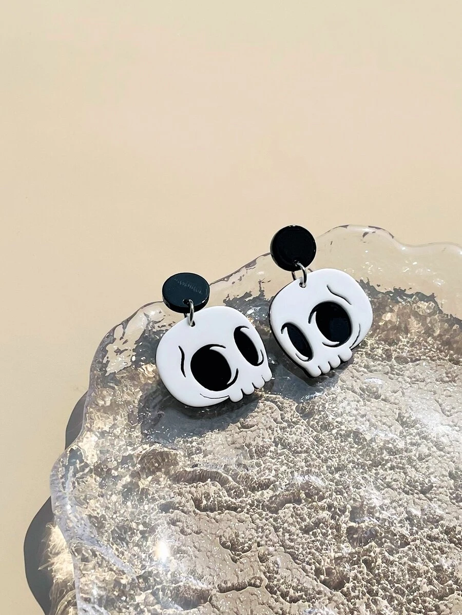 1pair Fashion Skull Design Stud Earrings For Women For Daily Decoration