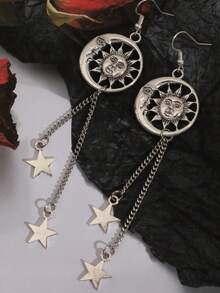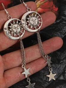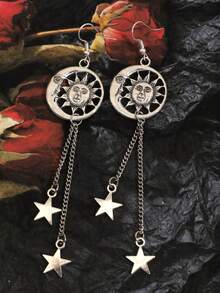 Goth 1pair Fashion Zinc Alloy Sun & Moon Drop Earrings For Women For Daily Decoration
