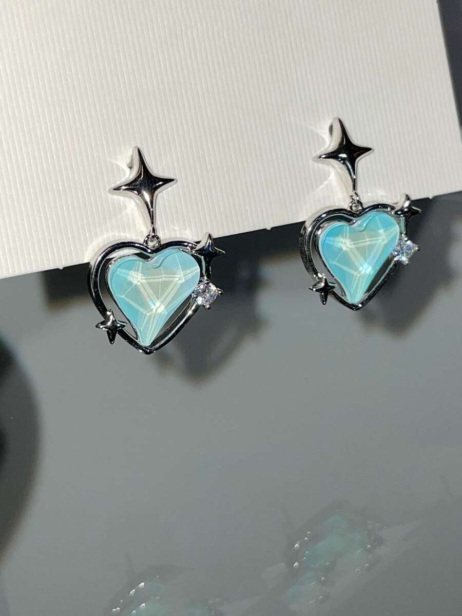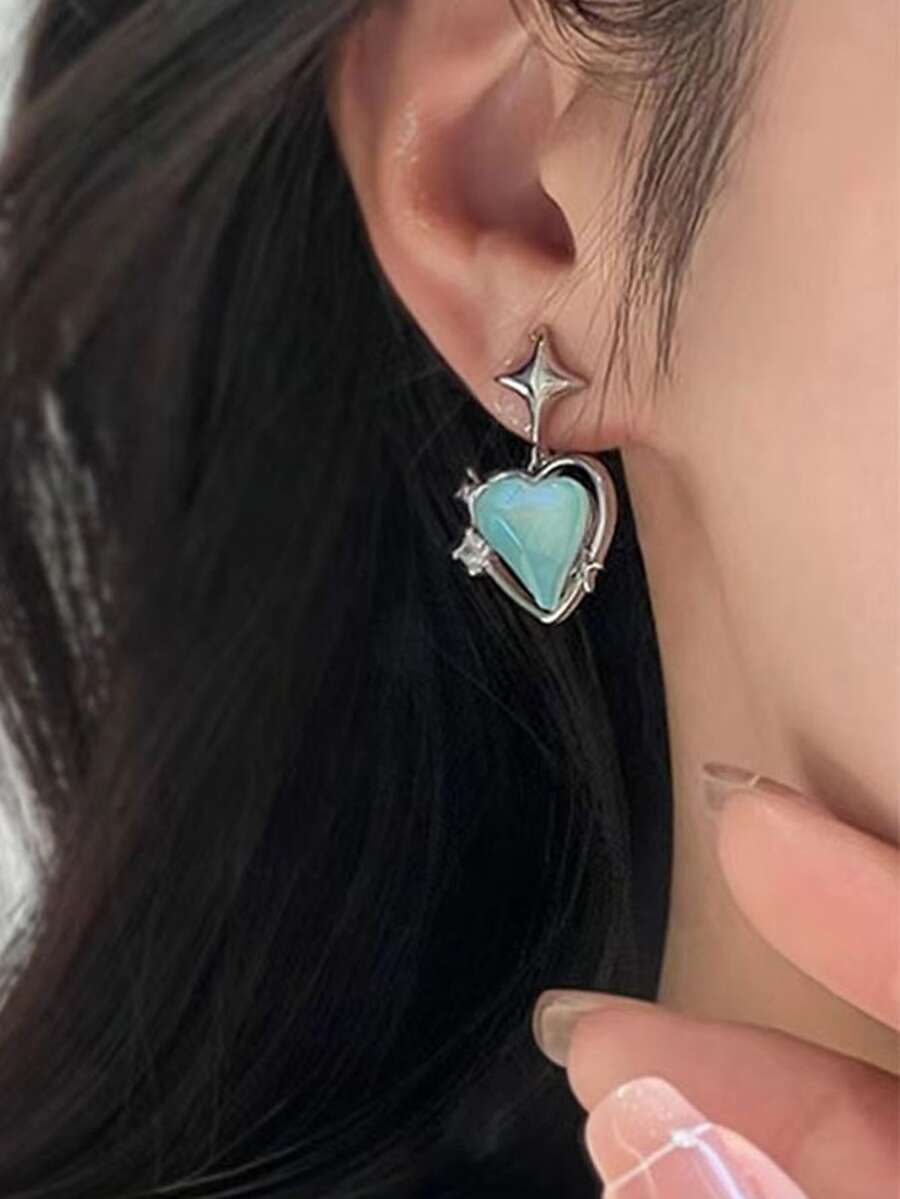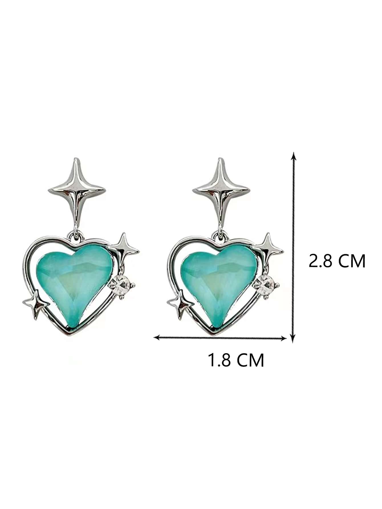 1pair Fashionable Zinc Alloy Four-pointed Star & Gemstone Decor Heart Drop Earrings For Women For Daily Decoration