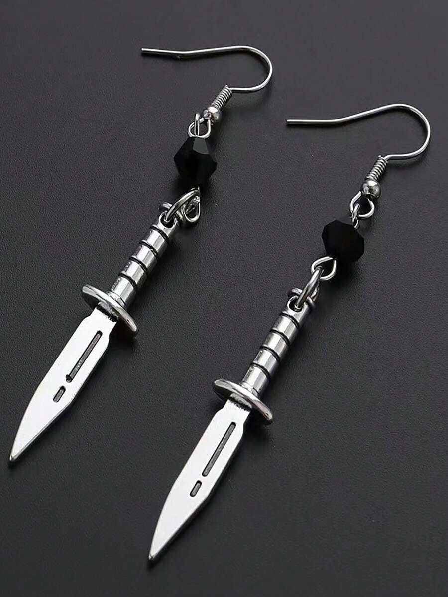 Goth 1pair Funky Iron Alloy Sword Drop Earrings For Women For Daily Decoration