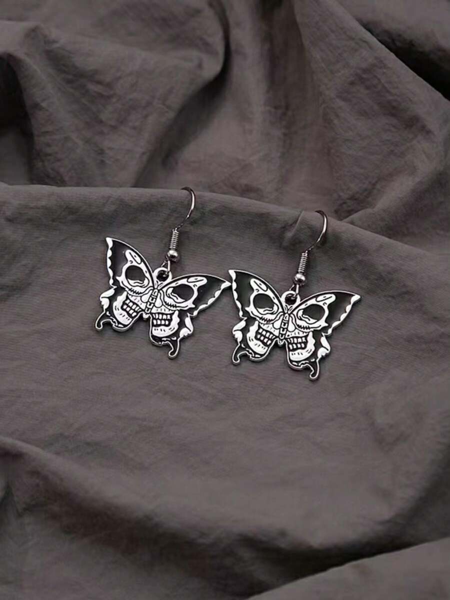 Goth 1pair Funky Zinc Alloy Butterfly & Skull Drop Earrings For Women For Daily Decoration