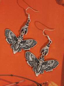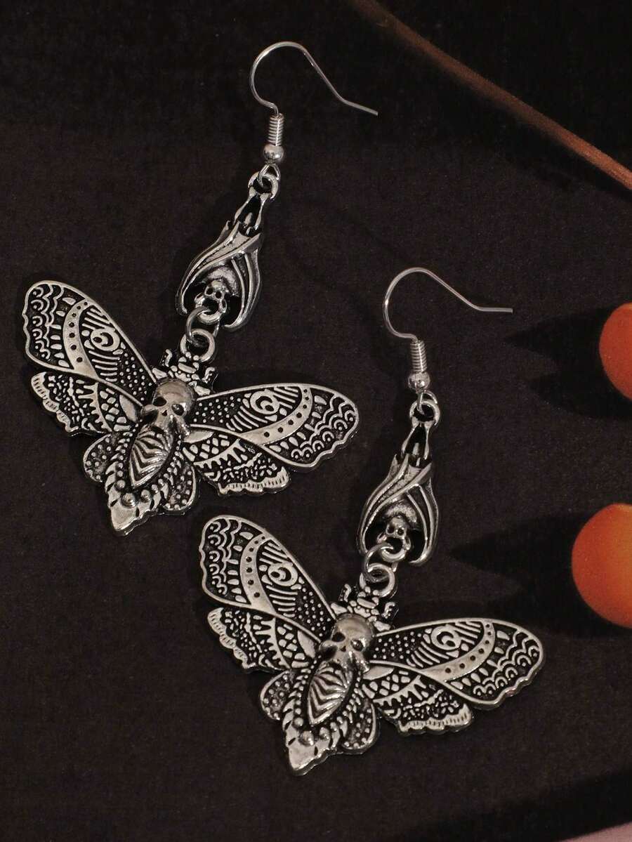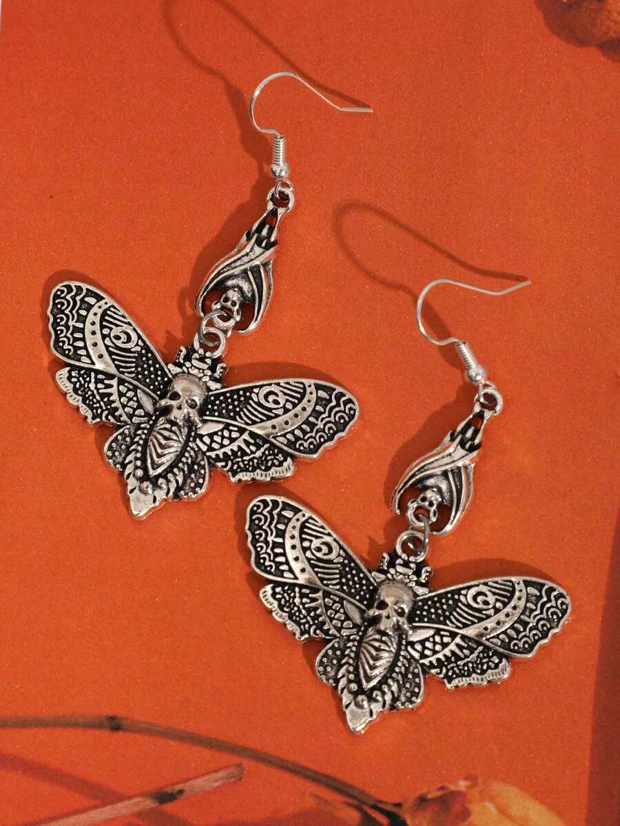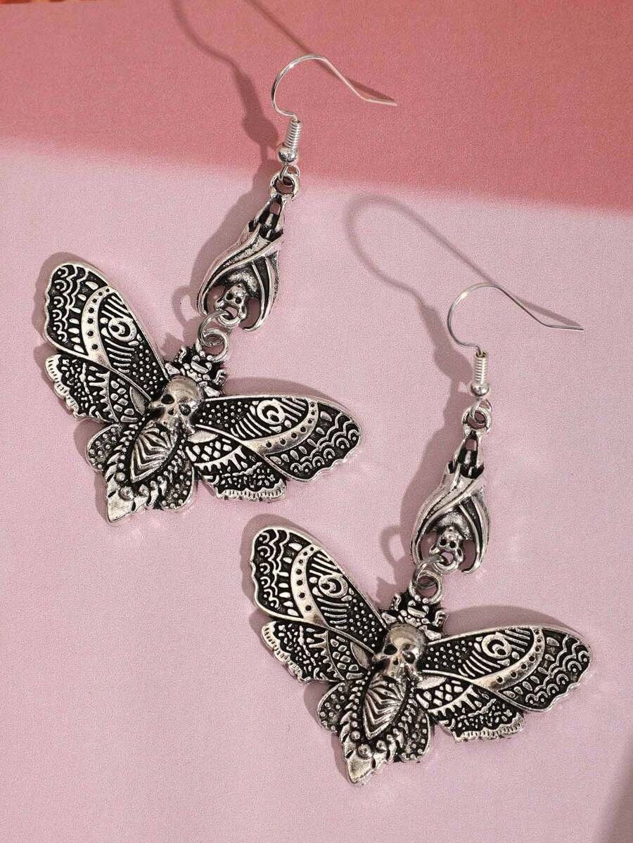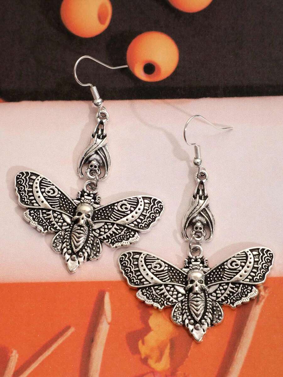 Goth 1pair Funky Zinc Alloy Skull & Butterfly Drop Earrings For Women For Halloween