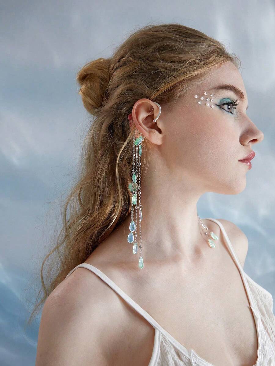 Fairycore 1pair Glamorous Zinc Alloy Scales Decor Ear Cuff For Women For Party