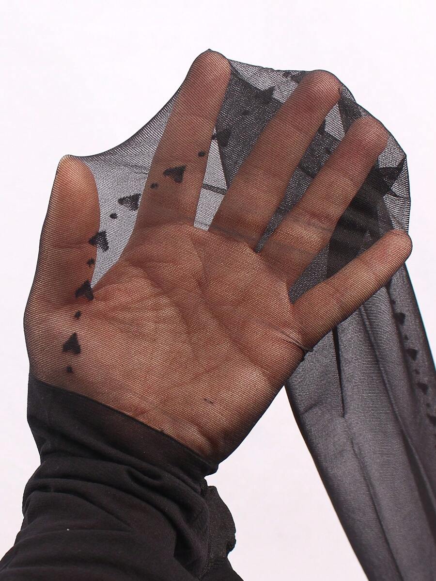 1pair Heart Pattern Mesh Black Snag Tights