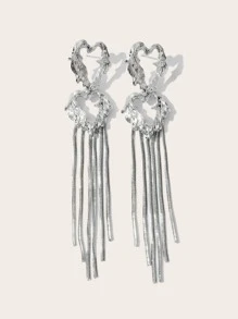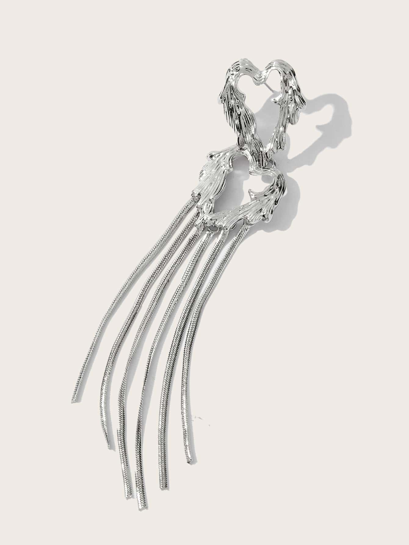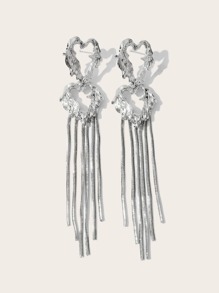 1pair Punk Zinc Alloy Heart & Metal Tassel Drop Earrings For Women For Daily Life