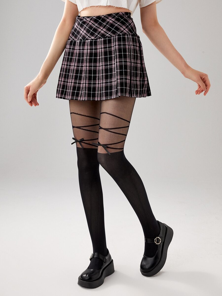 1pair Women Bow Decor Fashion Tights For Daily Life