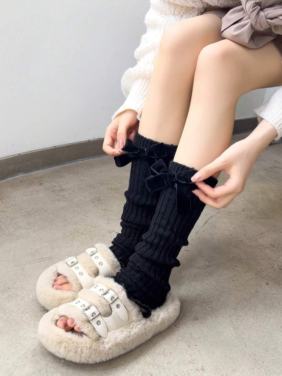 Kawaii 1pair Women Bow Decor Leg Warmers