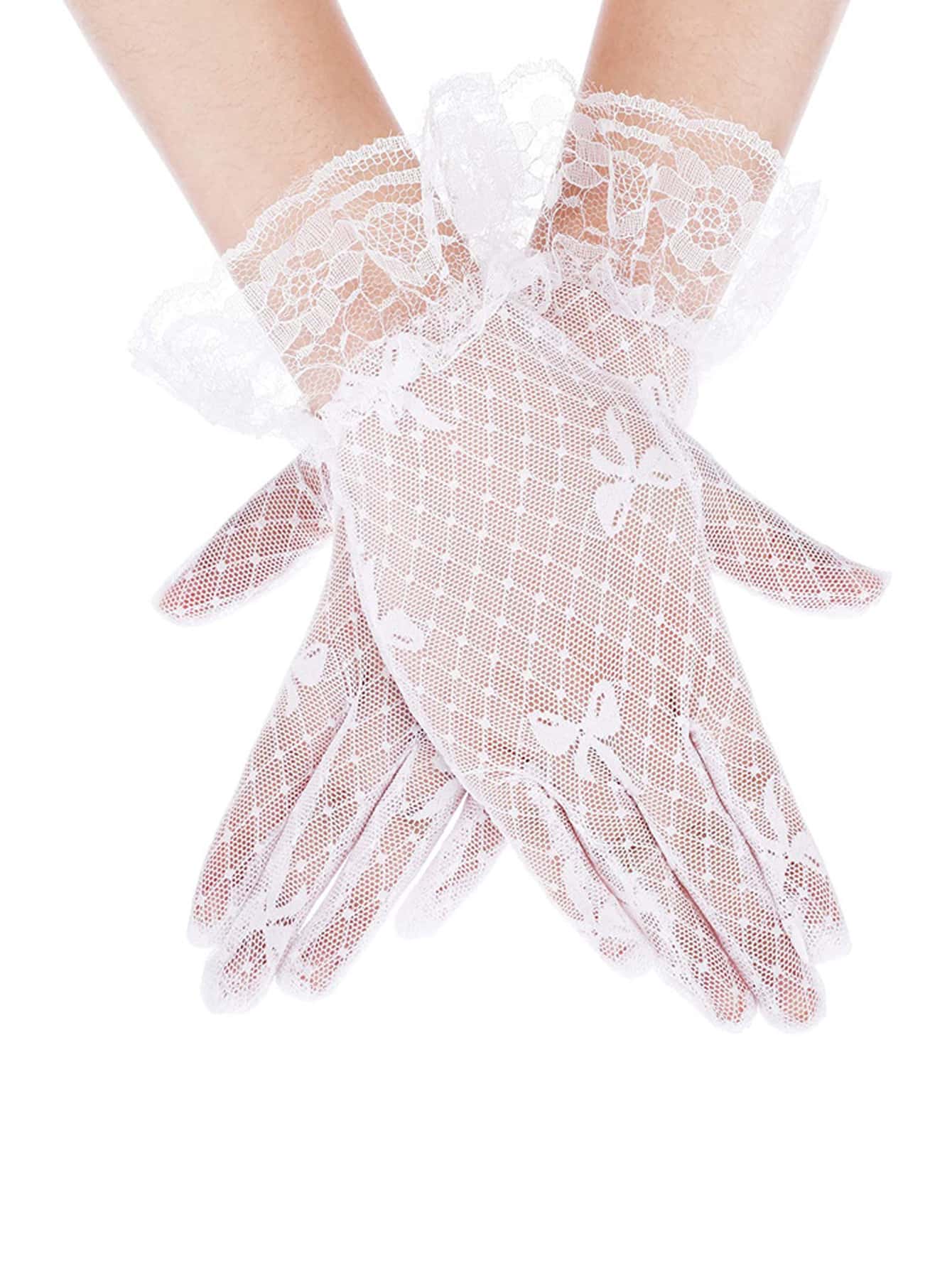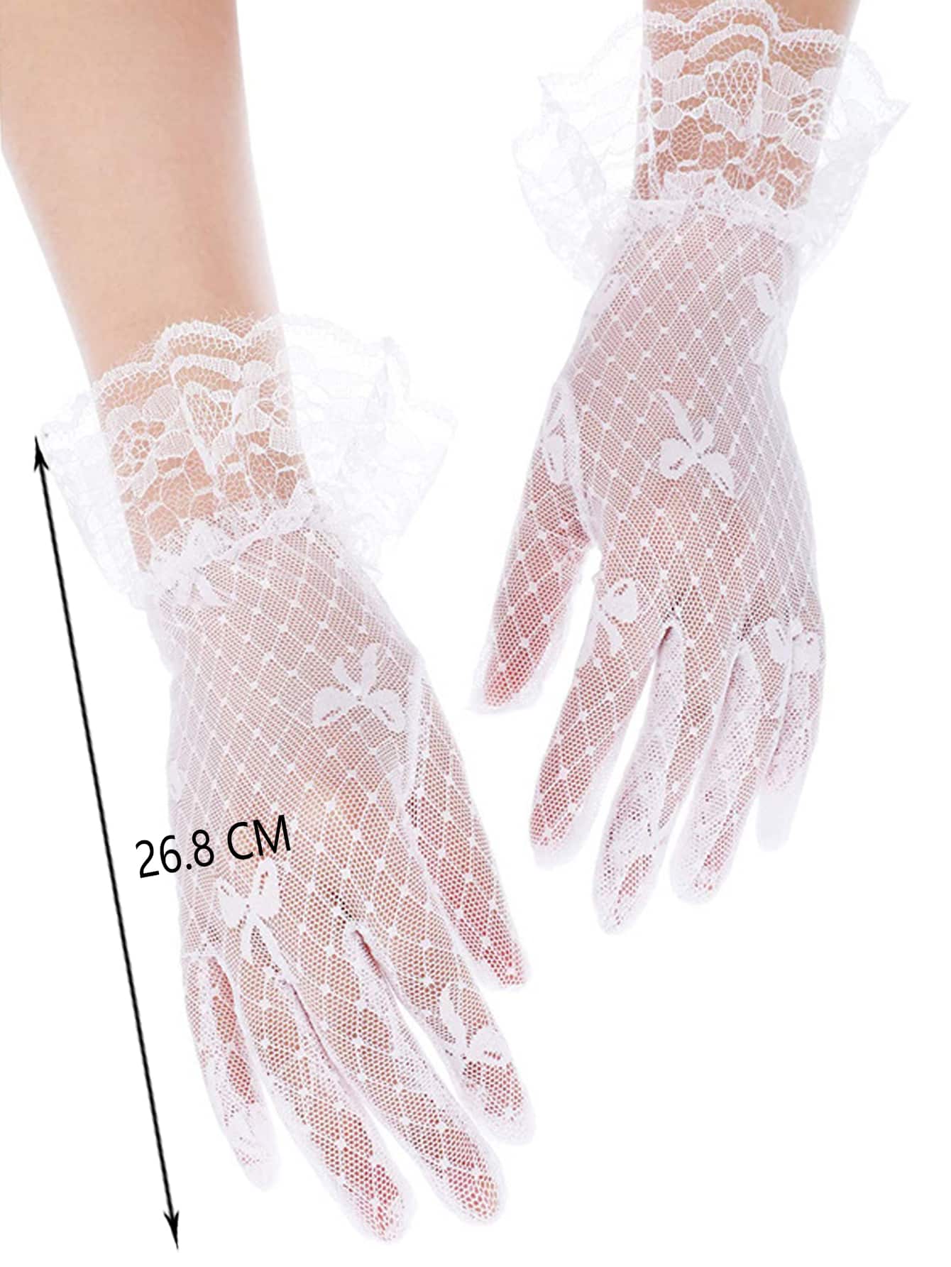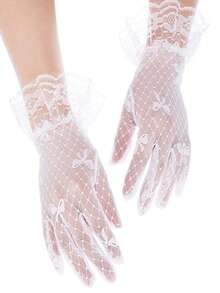 1pair Women Bow & Floral Embroidered Ruffle Trim Elegant Gloves For Party