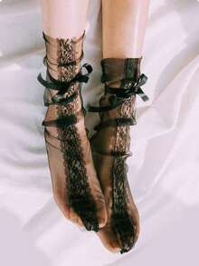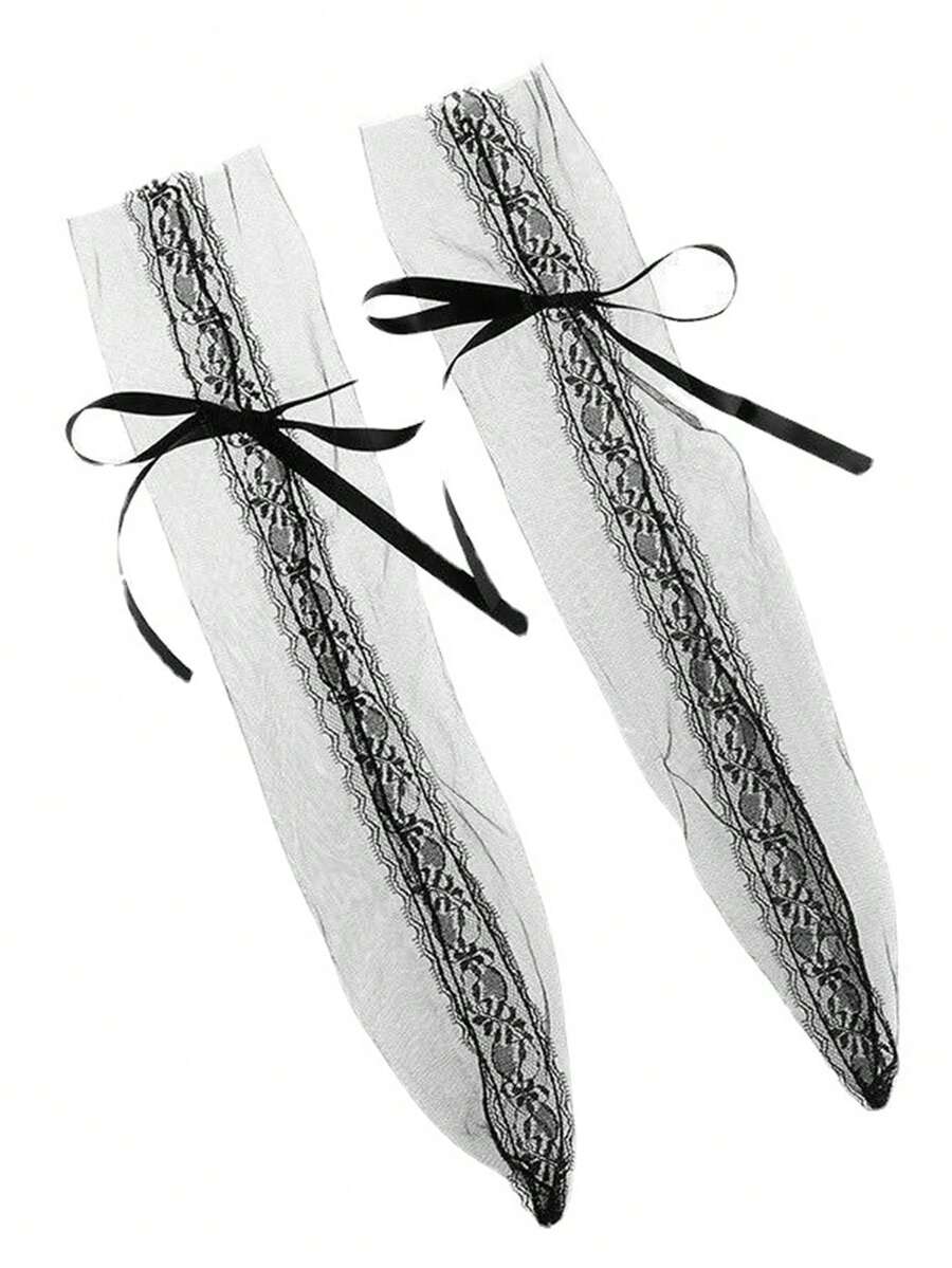 Goth 1pair Women Contrast Lace Sheer Fashion Crew Socks