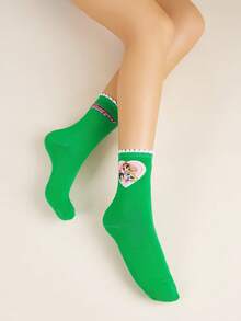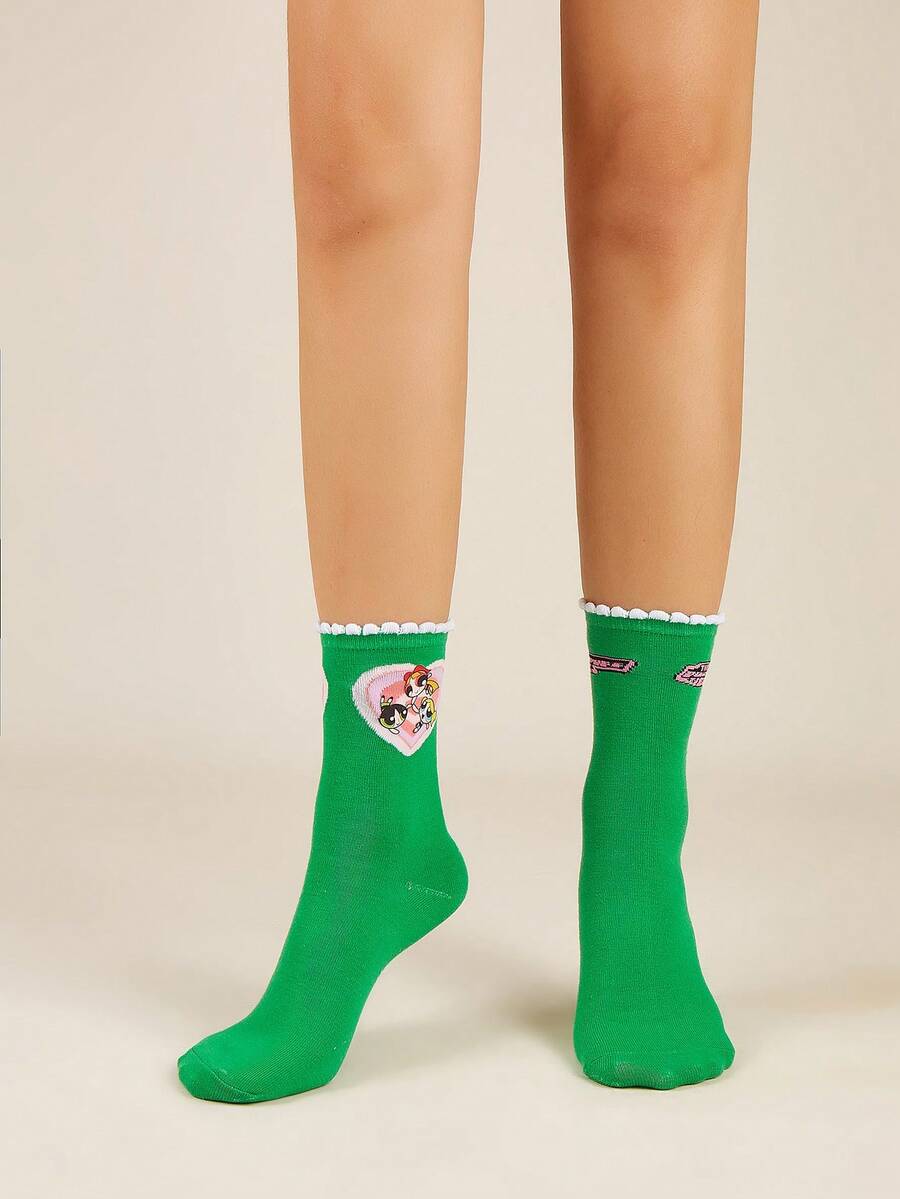 The Powerpuff Girls | ROMWE 1pair Women Letter Cartoon Pattern Fashion Crew Socks