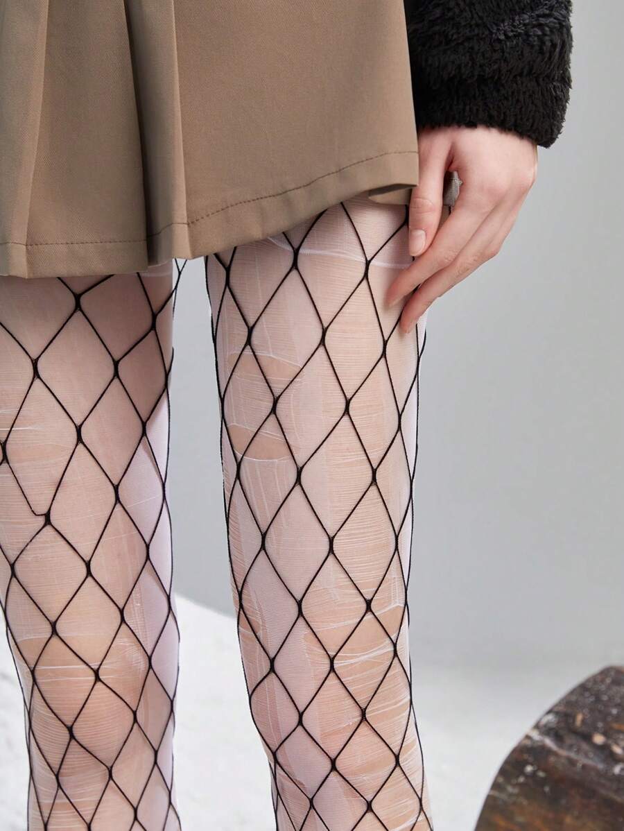 1pair Women Solid Fishnet Tights & 1pair Women White Tights
