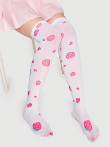 Kawaii 1pair Women Strawberry Print Over The Knee Socks