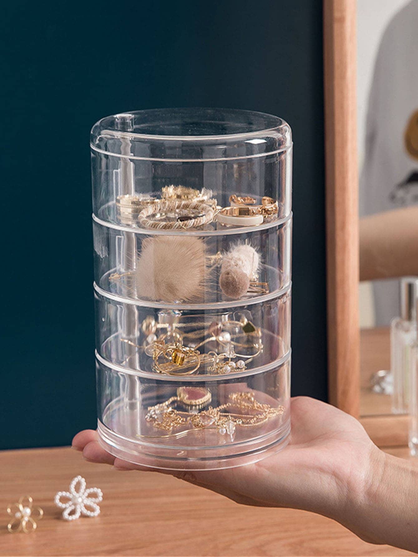 1pc 4 Layer Clear Jewelry Storage Box, Rotatable Plastic Multi-layer Jewelry Organizer, For Home