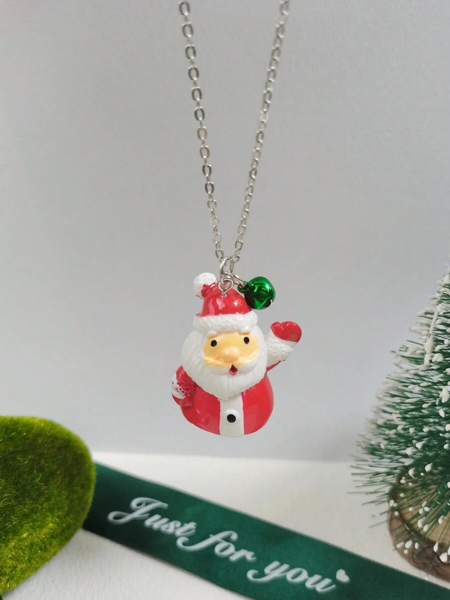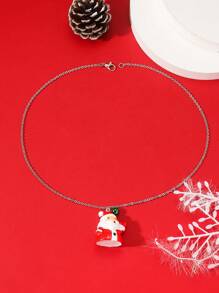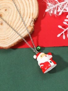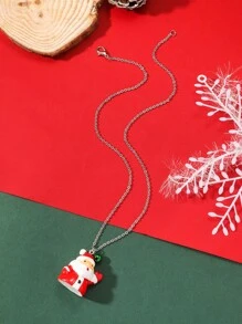 1pc Christmas Fashionable Simple 3d Santa Claus Pendant Necklace