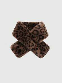 Goth 1pc Coffee Y2K Punk Retro Fluffy Leopard Textured Animal Print Warm Neck Gaiter, Fashionable Minimalist Wild Style Scarf For Women, Suitable For School, Shopping, Travel, Christmas, Halloween, Autumn/Winter